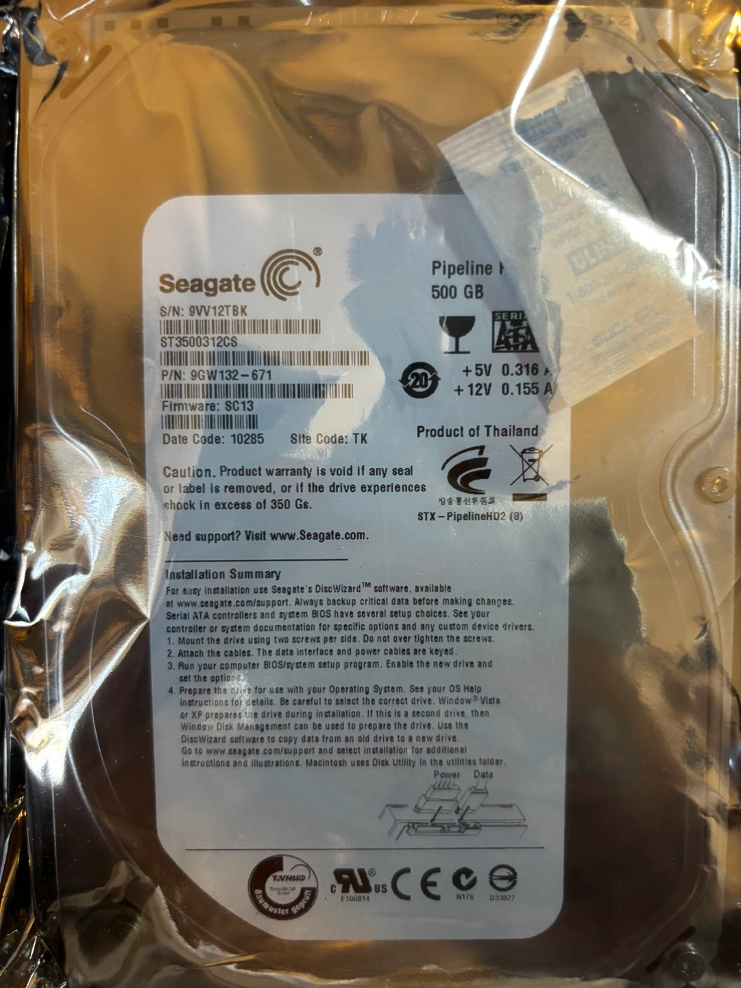 New Seagate 500GB Pipeline HD.2 SATA 5900RPM 8MB 3.5'' 7X24