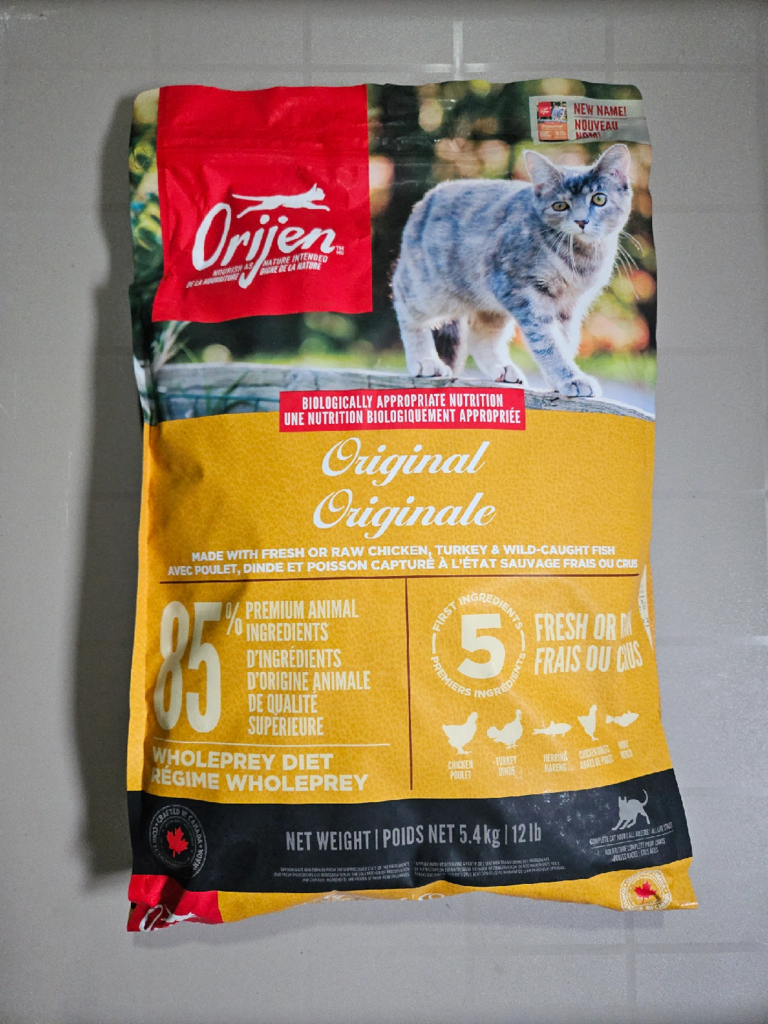 65New, sealed, 12 lb/5.4 kg bag of Orijen Original cat food. Selling because our pet now needs a special diet. Expiry Date is June 14, 2026 shown in 2nd picture. Milton pick up, cash only, no holds.