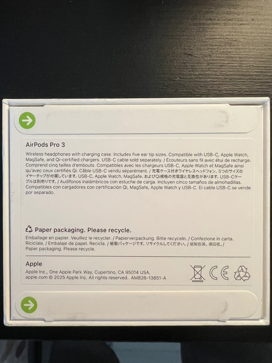 New sealed box never opened Selling a brand new pair of Apple AirPods Pro 3! These wireless headphones come with a charging case and include five ear tip sizes for a comfortable fit. Compatible with USB-C, Apple Watch, MagSafe, and Qi-certified chargers. Price firm Retail price $370 after taxes