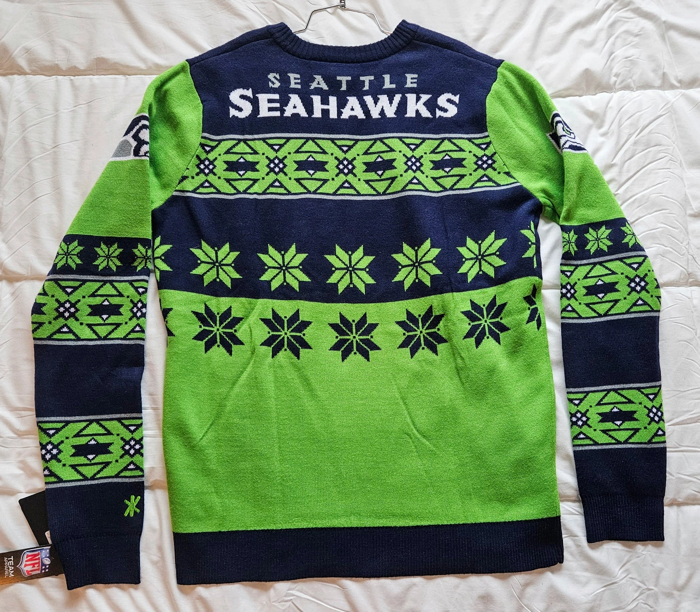 1000+New Seattle Seahawks Christmas Sweater Size Large Mint This NFL authorized Seattle Seahawks Christmas sweater size Large is new and its in mint cond.