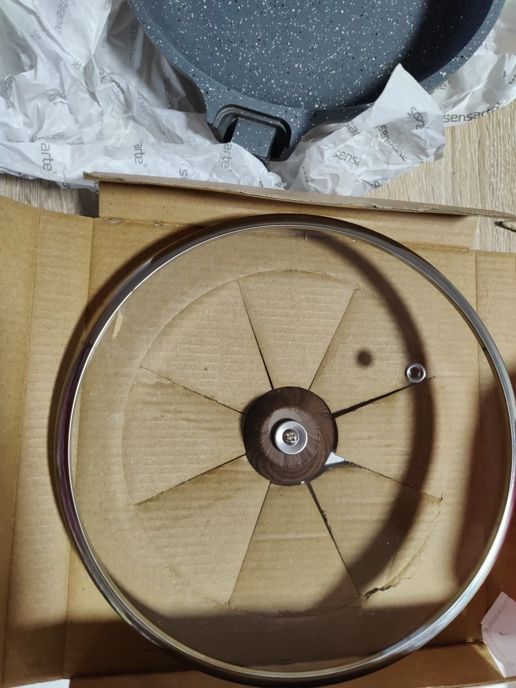 26I'm selling a brand new Sensarte nonstick frying pan! It's an 8-inch skillet with a glass lid. The pan is free of PFOA/PFOS, making it a healthy choice for cooking. It's great for omelets and other kitchen cooking needs. The box is included, along with a screwdriver!