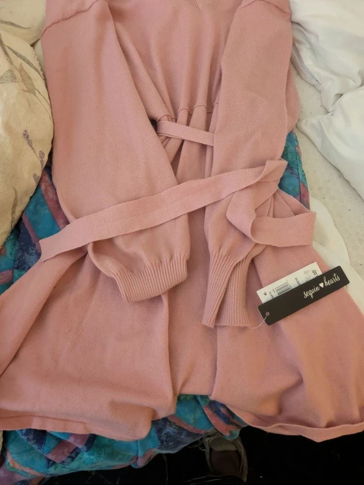 80Selling a brand new Sequin Hearts sweater dress! It's a beautiful light pink colour and comes with a matching belt. Perfect for staying cozy and stylish this season