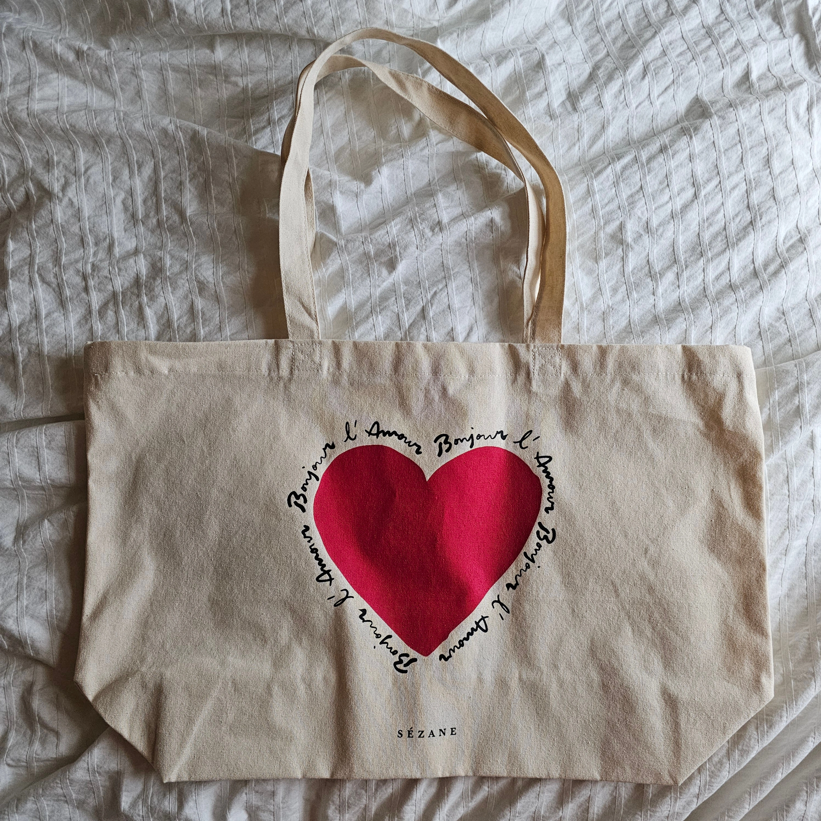 ✨notes : - cash (preferred) / e-transfer / paypal accepted - pick up: Waterloo, ON - shipping: additional cost, dm me your postal code for a quote - questions & offers: feel free to dm :) - decluttering my clothes & misc items—check my other listings if you're interested - smoke-free, pet-free environment ⋆。°✩₊ °✦ ‧ ‧ ₊ ˚✧₊ °✦ New Sezane Tote Bag "Bonjour l'Amour" - Ecru ✨condition : - new, never used ✨brand : sezane ✨colour : ecru ✨measurements : - length: 50.8 cm / 20 in - width: 33.02 cm / 13 in ✨material : 100% cotton ✨purchase date : apr 2025 ✨full view + extra images : https://imgur.com/a/JG2DSV8 ✨full description tbd.