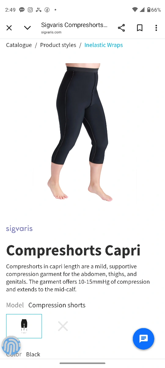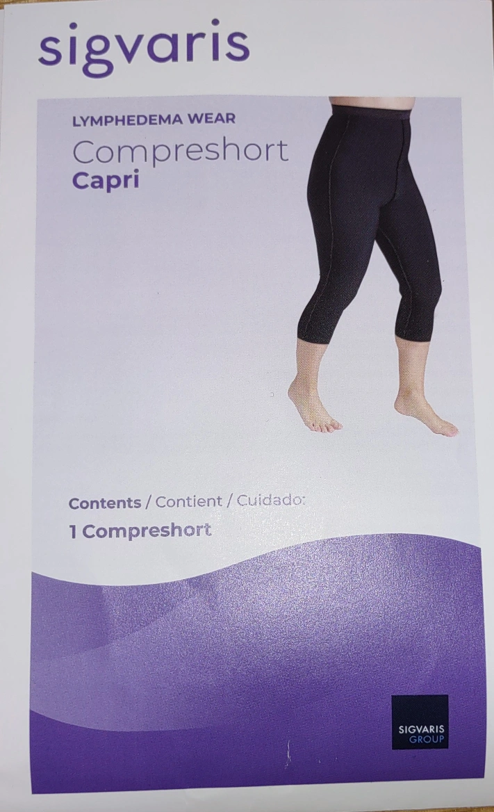 1000+Compreshorts in capri length are a mild, supportive compression garment for the abdomen, thighs, and genitals. The garment offers 10-15mmHg of compression and extends to the mid-calf. A pair of black capri length compression shorts. Designed for comfort and support. Consider wearing them to relax and unwind after a long day. Details Extensive size range - product fits a 5XL patient or 208 cm waist Seams are externally exposed, away from the skin, to prevent irritation or abrasion Expanded waist band to prevent product from rolling down or impacting skin Stretch fabric is moisture wicking to keep skin cool and dry Capri length offers additional coverage, ending at the mid-calf Compreshorts in capri length is a mild, supportive compression garment for the abdomen. The garment is made with soft, breathable fabric and reinforced seams for a comfortable and durable fit. value $160 https://www.sigvaris.com/en-ca/catalogue/product-styles/inelastic-wraps/compreshorts-capri-compression-shorts?_gl=1*uvwk7v*_up*MQ..*_gs*MQ..&gclid=CjwKCAjwgb_CBhBMEiwA0p3oOLLaDc2dCYNIzKXnylapZ8lhHbHUfbuo5sV0fWohOQ-G4pJbAprdUhoCU6gQAvD_BwE