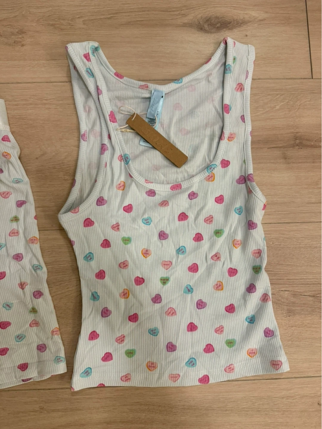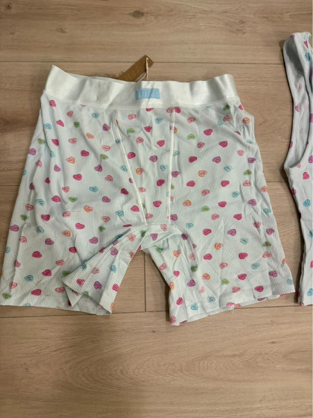 10Selling a brand new SKIMS Valentine Rib Tank and Boxer set in size small! It's a super cute and comfy set with a fun heart print. Perfect for lounging around the house or as sleepwear. Never worn and still has the tags on!