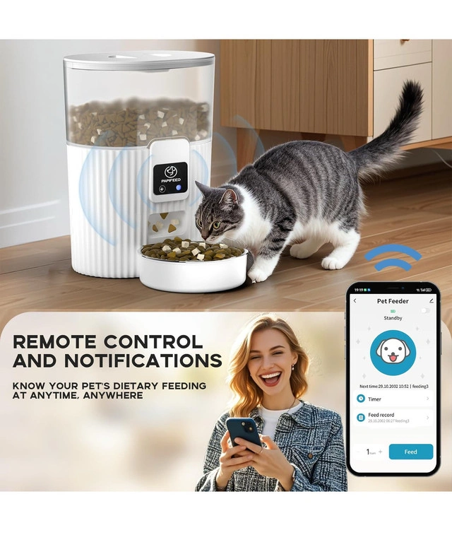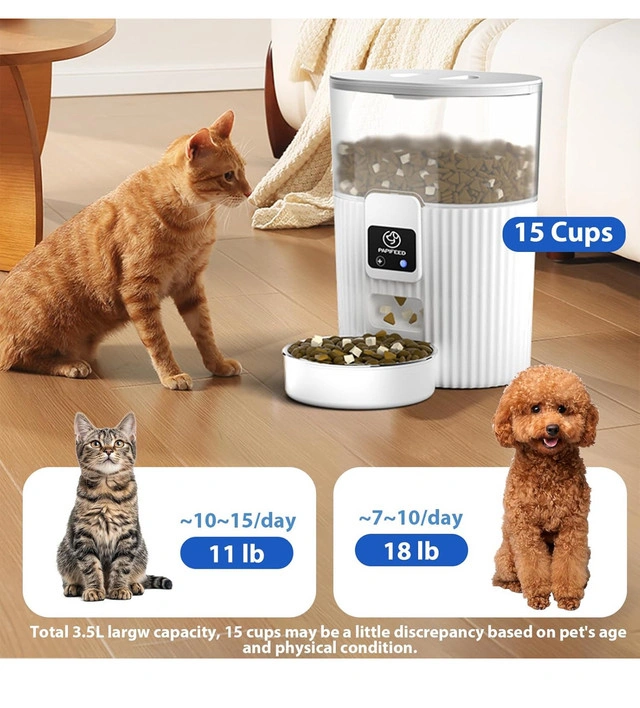 Selling a new in box Automatic Cat/Dog Feeder 3.5L/15 Cup 2.4G WiFi Pet Feeder for Dog Work with Alexa & Echo Timed Cat Food Dispenser for Remote Feeding with Stainless Steel Bowl up to 10 Meals Per Day with APP 082560(B12)