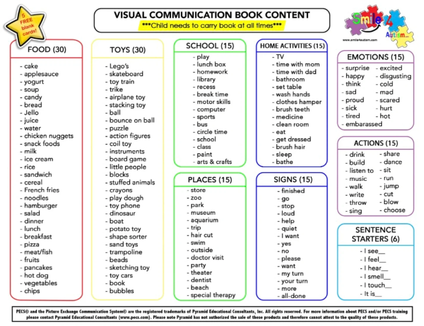 291New, sealed smile4autism Small Visual Communication Picture Book includes 1 sturdy binder, 156 colorful photo cards, 1 sentence strip (color may vary), 5 divider tabs, 1 easy pamphlet to understand the six steps of the pcs system, and 6 extra cards to expand your children language and cognitive development $60 (retail $120 plus tax) Pickup in Whitby