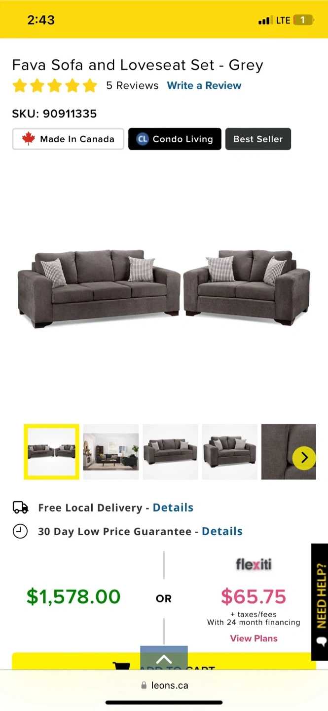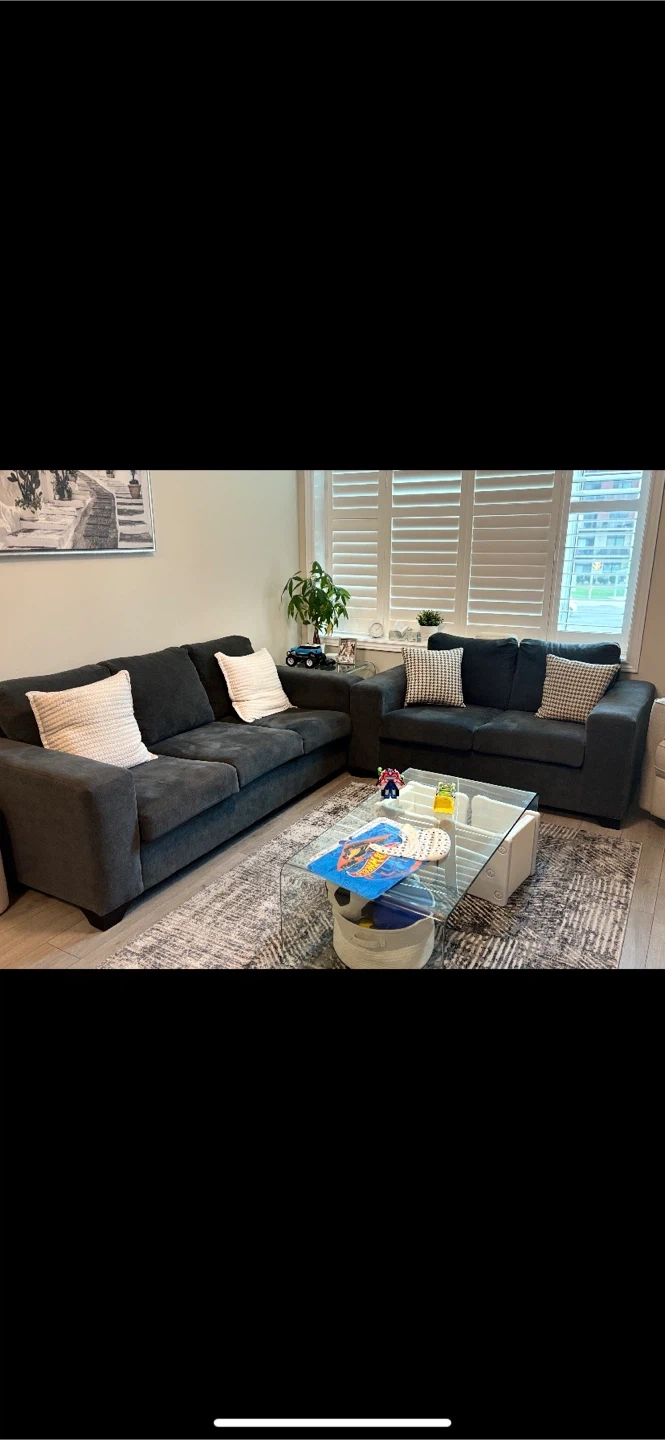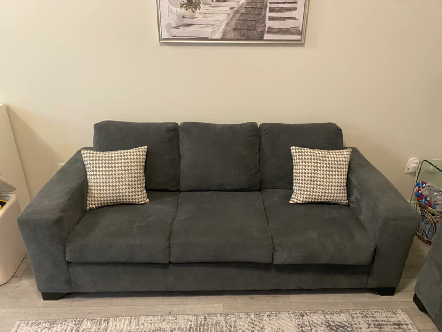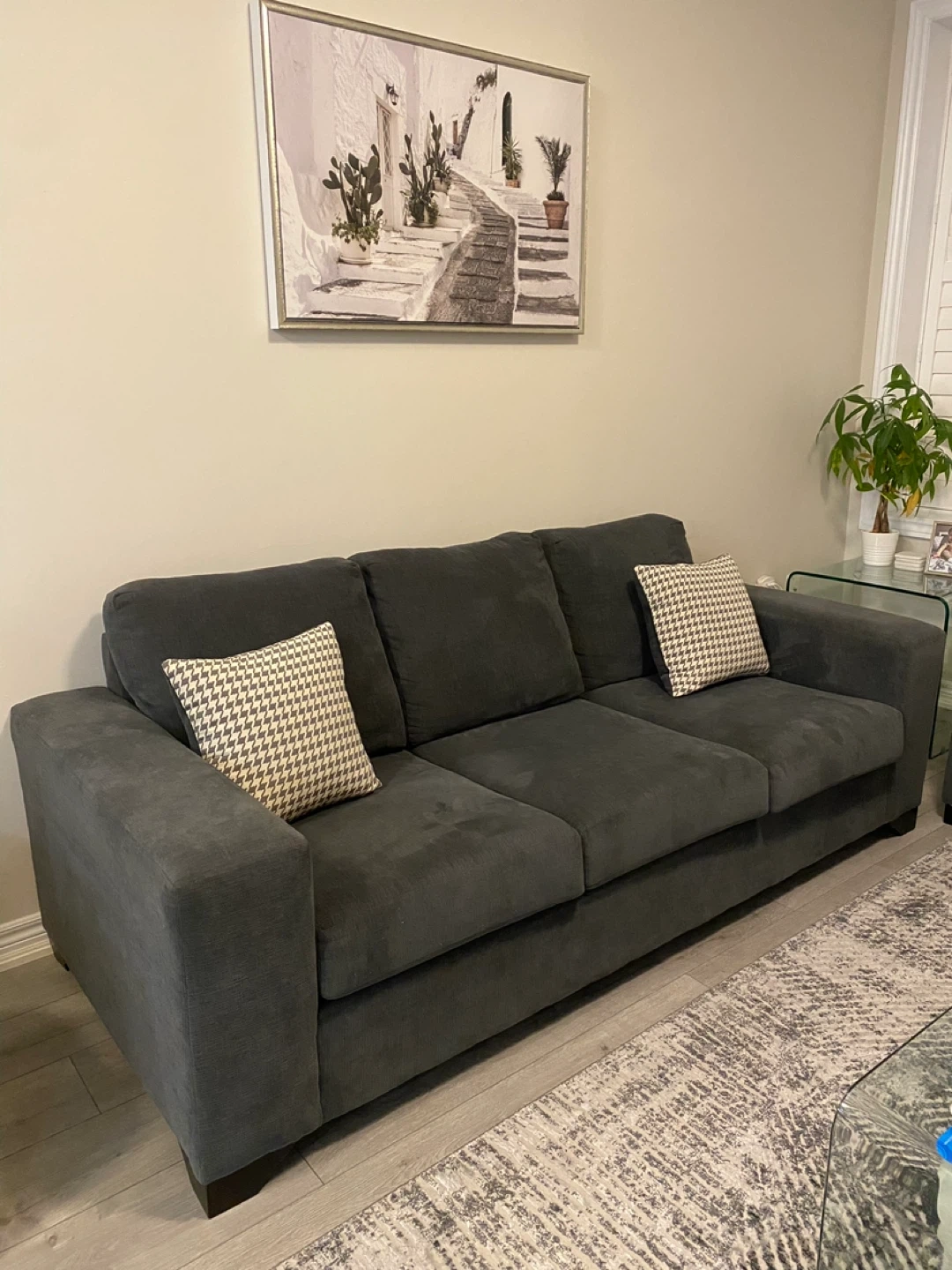 Selling a comfy grey sofa and loveseat set from Leon’s. They're in perfect condition and would be perfect for a living room or family room. No stains, no rips, no smoking, no pets. 10/10 condition. Dimensions are in the photos. Used for 6 months only!