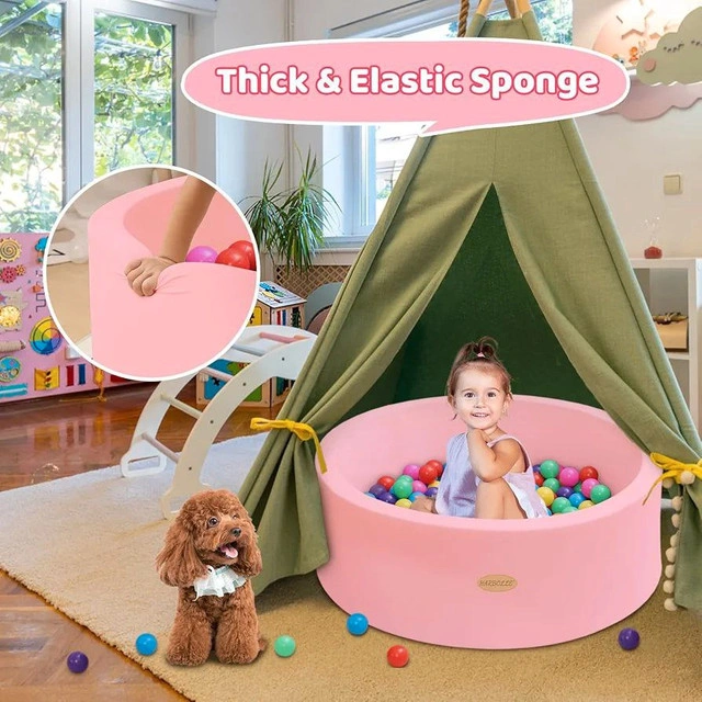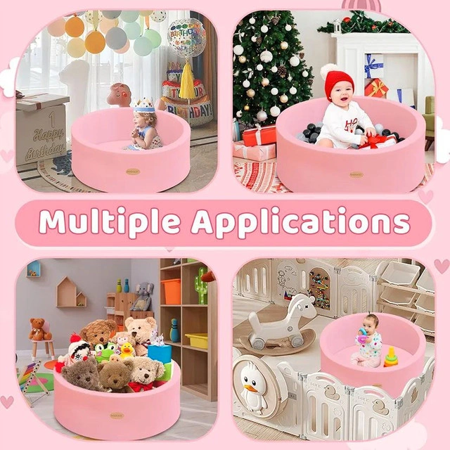 34New in box soft foam ball pit for toddlers, kids, or even pets! Grey and pink. Creates a fun and safe play area. Details: Size: 35.4" (90 cm) diameter x 11.8" (30 cm) height Material: Soft memory foam + fabric cover No assembly required – it expands on its own Removable washable cover Lightweight (2.2 kg) and foldable for easy storage Balls not included Ideal for indoor play, birthdays, or a cozy safe zone. The foam is soft, skin-friendly, and holds its shape beautifully. Price: $45 Pickup in Cedarbrae, Cedardale Bay SW, Calgary, T2W 5C8