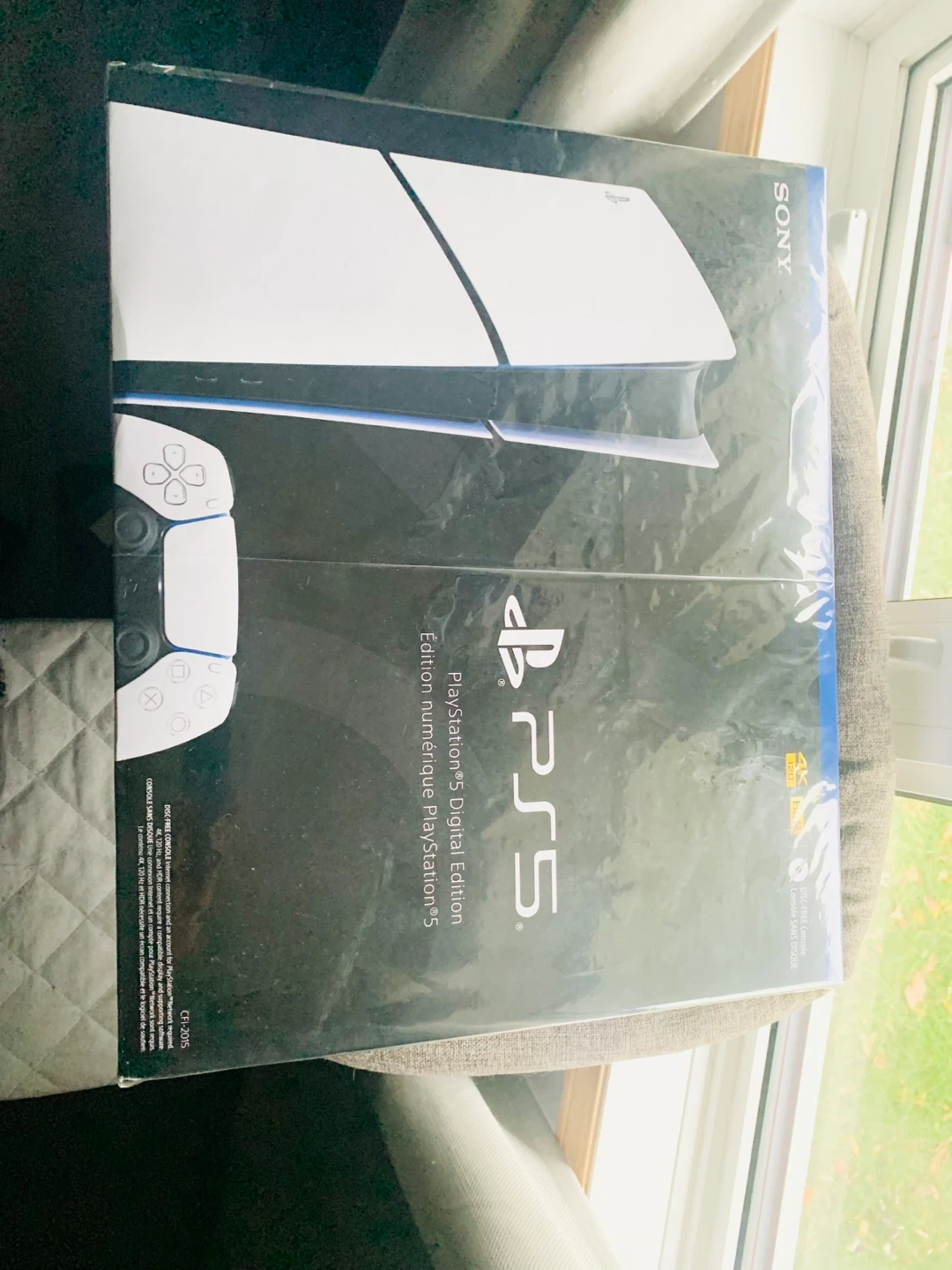 15Won it at a social. Selling a brand new, still-in-box Sony PlayStation 5 Digital Edition! Enjoy lightning-fast loading times with its custom SSD and integrated I/O. Experience breathtaking immersion with haptic feedback, adaptive triggers, and 3D Audio technology. Get ready for stunning games and incredible graphics!