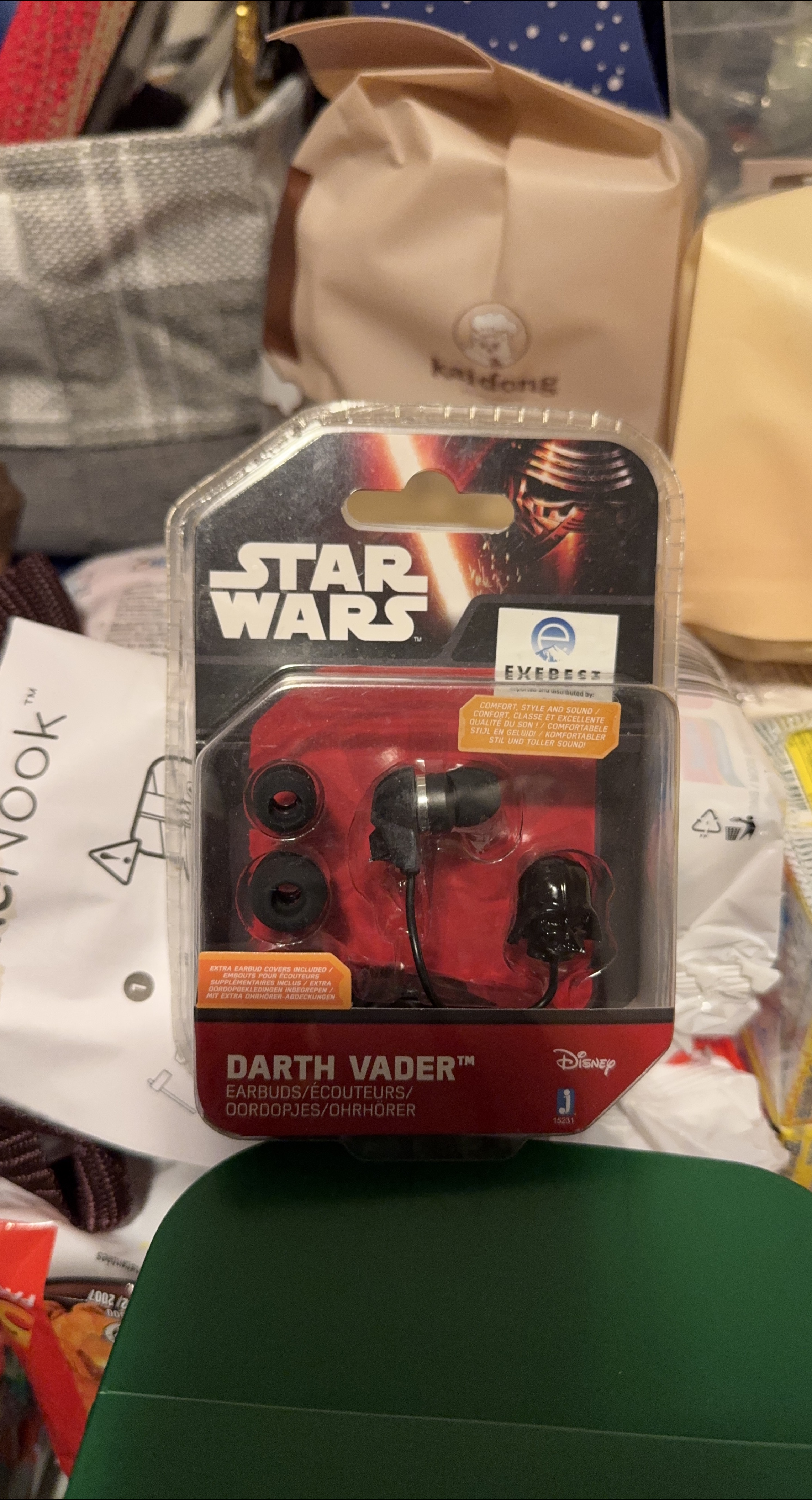 These are brand new Star Wars Darth Vader earbuds! They come with extra earbud covers and are officially licensed by Disney. They're designed for comfort, style, and excellent sound quality!