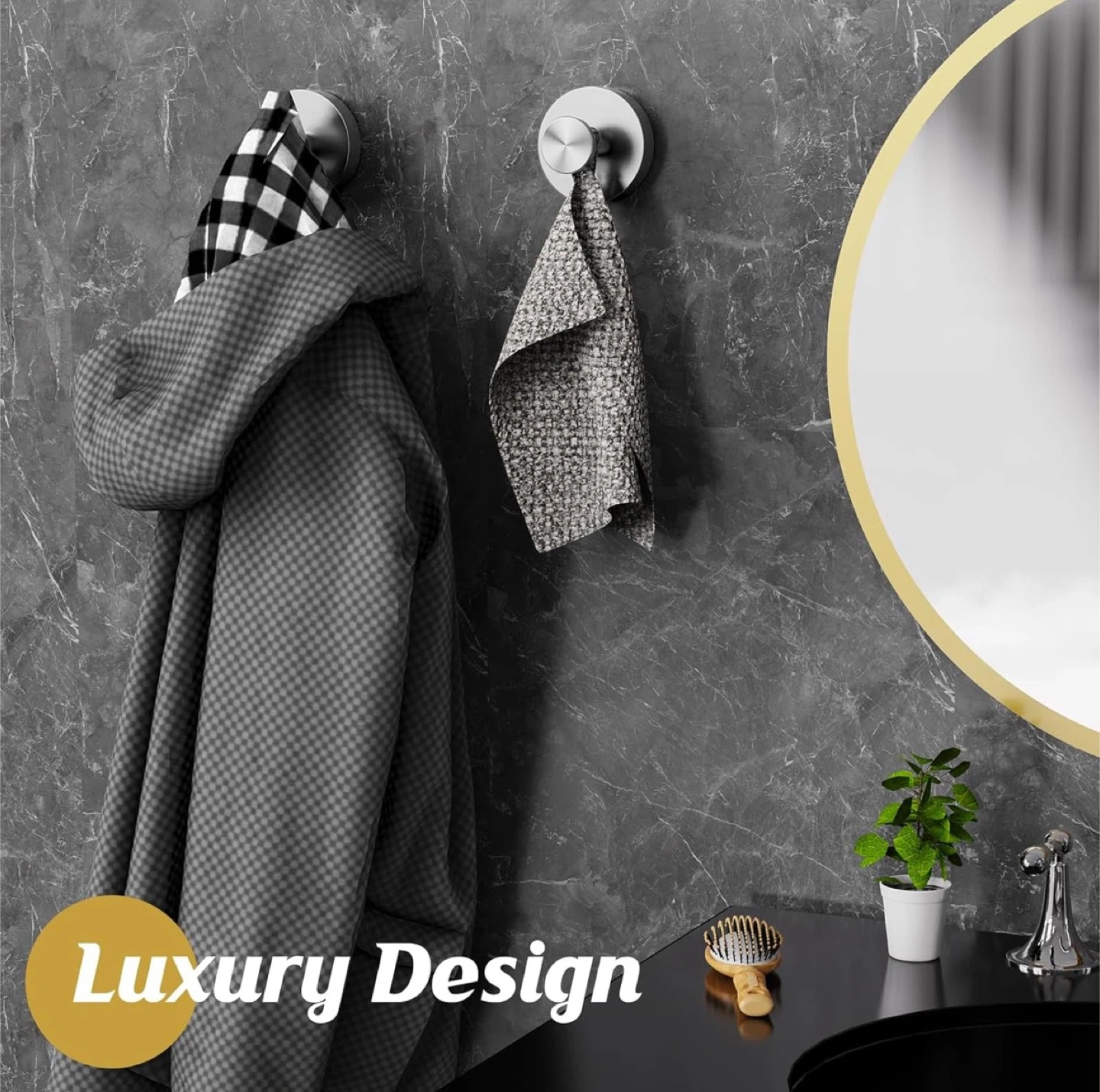 92These heavy-duty suction cup hooks are perfect for adding extra storage to your bathroom or kitchen! They feature a special circular twist lock design for easy installation without any tools or drilling. The hooks are made of 304 stainless steel and can hold up to 11 lbs. They're also waterproof and rustproof, making them ideal for use in wet environments