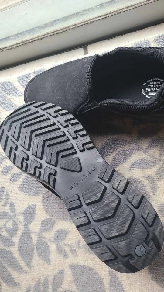 Basically brand new, I just tried them on briefly and realized they are too big / loose for me. Maybe I'm size 11 or these fit more like a 13 I'm not sure. Not sure if it's actual suede or synthetic. But they seem nicely padded and should be comfortable fit for people's wider feet. No laces. Easy on / off! Great comfortable shoes. Price dropped.