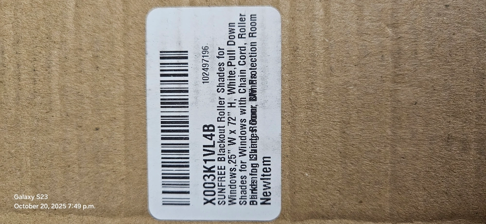 60Selling a brand new SUNFREE blackout roller blind still in its original packaging! This shade is perfect for darkening any room. It measures 25 inches wide by 72 inches high, and it's white. It features a pull-down chain cord for easy operation.