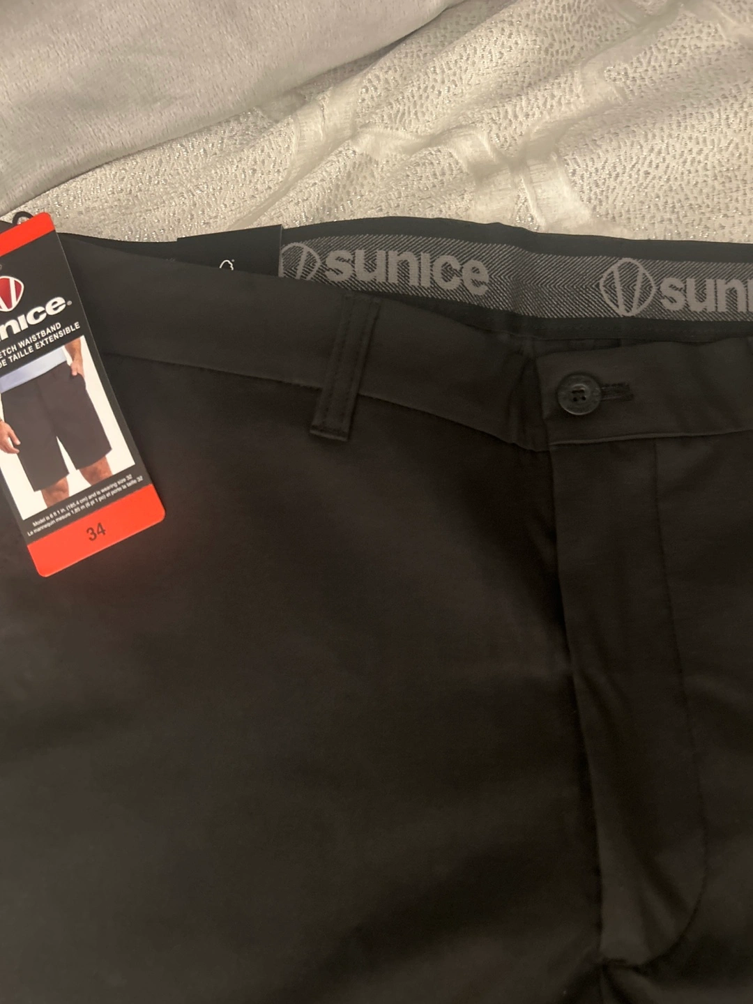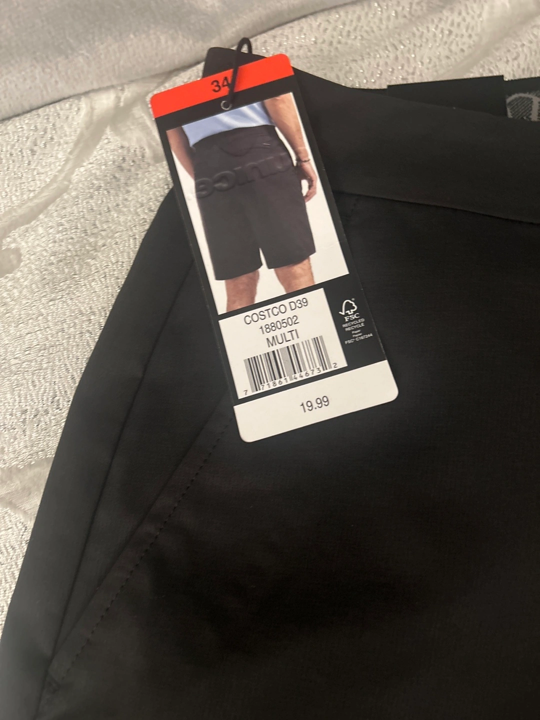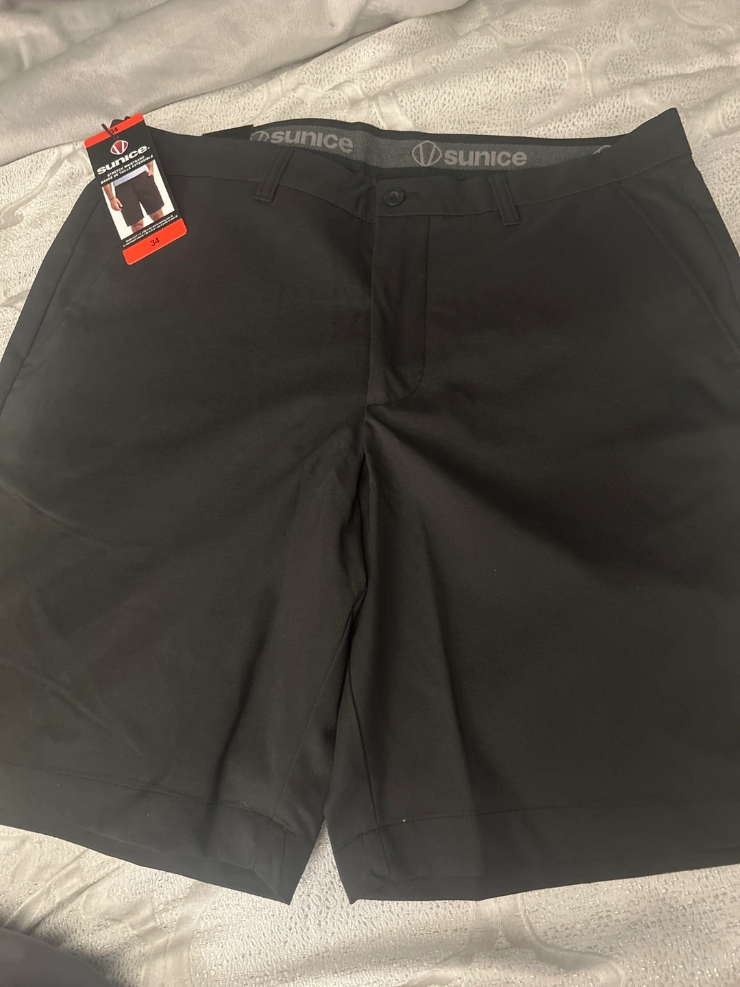 These Sunice men's shorts are brand new with tags! They're a size 34 and come in black. The tag shows they were originally $19.99 at Costco