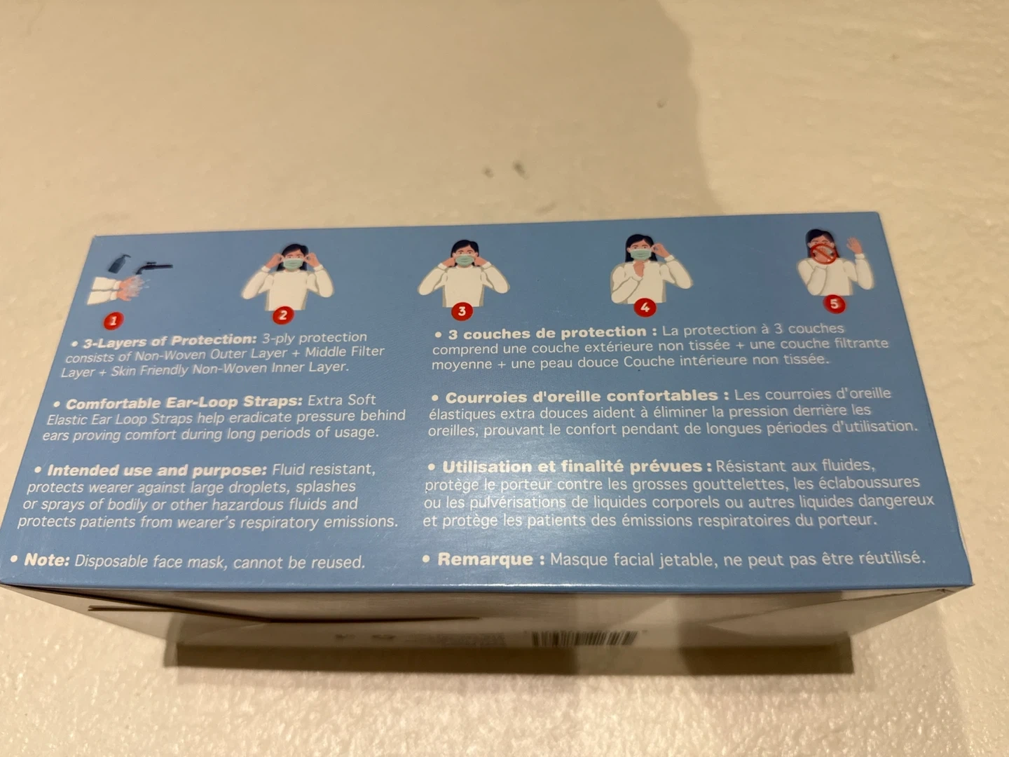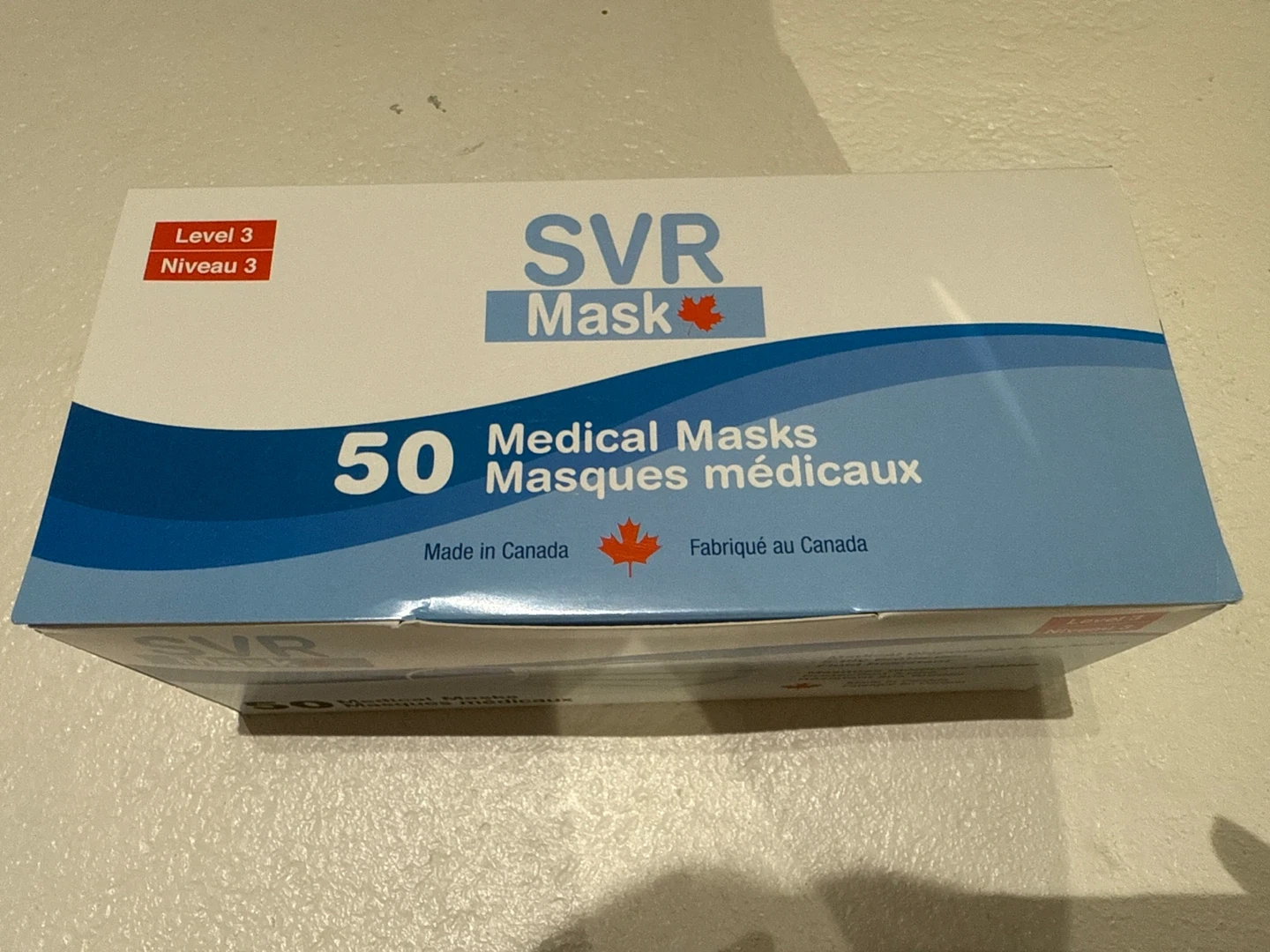 60Selling a brand new, unopened box of SVR Level 3 medical masks. Each box contains 50 disposable face masks. These masks offer 3-ply protection and are fluid resistant. Made in Canada! 3 box Available!