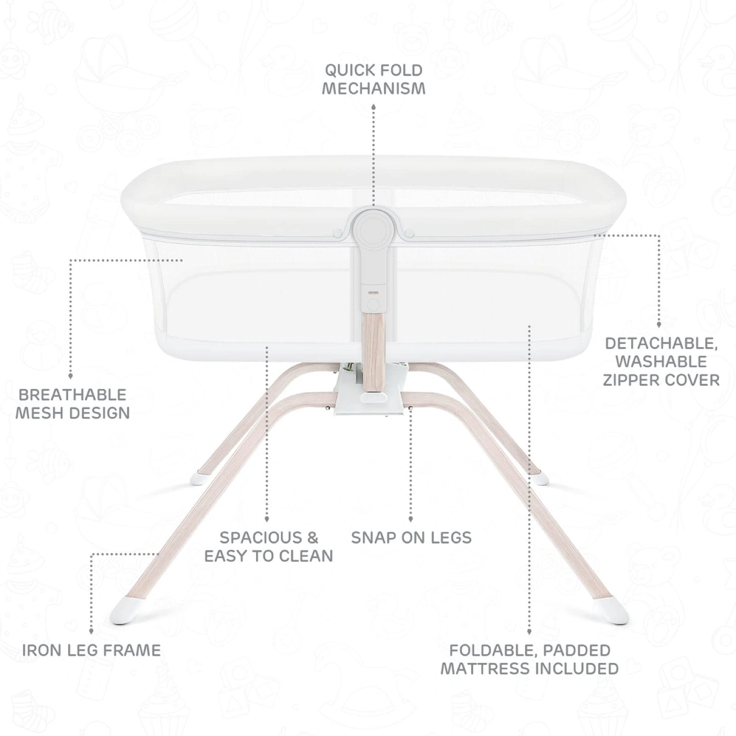 Brand new in original box Please check images for designs and prices DM for more information on any design. Pickup/Delivery available all over GTA Horizontal Rocking Mode: Our crib is equipped with a manual rocking mode, you only need to turn on the button at the bottom of the bed and push the crib lightly, it can easily become a cradle. Start rocking gently laterally to make your baby feel comfortable, helping to improve sleep quality. The crib doesn't make any noise during rocking, so parents don't have to worry about waking up their baby. High Breathability: The large mesh design on the left and right sides of the crib improves the flow of air, provides better air circulation, and reduces the risk of suffocation for the baby. Through the mesh surface, you can observe the your little one's movements and prevent dangerous postures of your baby in time. Adjustable Tilt Angle: The side of the bassinet can be tilted less than 10° with a Velcro strap. You can adjust a proper inclination when your little one hiccups. The tilt angle will effectively prevent the baby from refluxing and spitting milk. Stability: Designed with the 4-leg structure is more stable and not easily shaken. No matter how much your baby moves, there is no risk of this crib tipping over. Easy to Carry: The compact carry bag design allows you to place it in the trunk of your car while traveling thus reduce the burden of travel. It is lightweight and easy to carry. Simply fold it, pack in your travel bag and get ready to go!