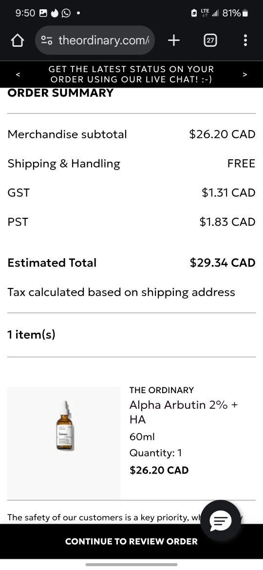 I'm selling The Ordinary Alpha Arbutin 2% + HA Serum. Each bottle contains 60mL of serum. Originally price $29.20 CAD each. 20 for each bottle, I have 2. Got them as a gift and I dont need them as I already have my skin care.