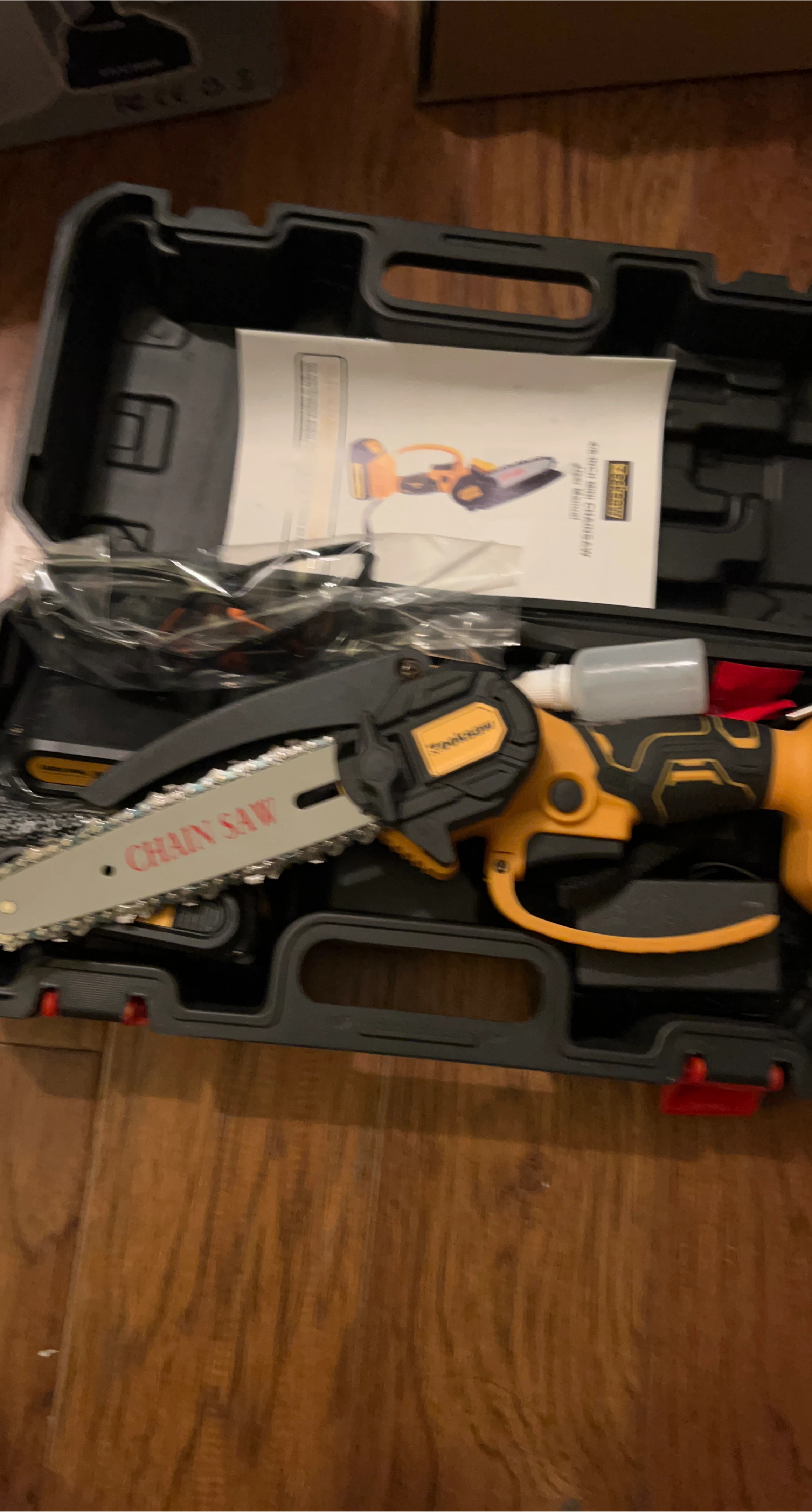 Selling a brand new Tooliom mini chainsaw. It comes with its original case and all included components. Perfect for small jobs around the yard! [Zeeksaw Mini Chainsaw Kit] Zeeksaw 6-Inch Cordless Mini Chainsaw Kit with 2 Large Capacity Batteries | Pruning Saw, Security Lock, Accessories - Ideal for Wood Cutting, Trimming & Woodworking, Includes Protective Gear,