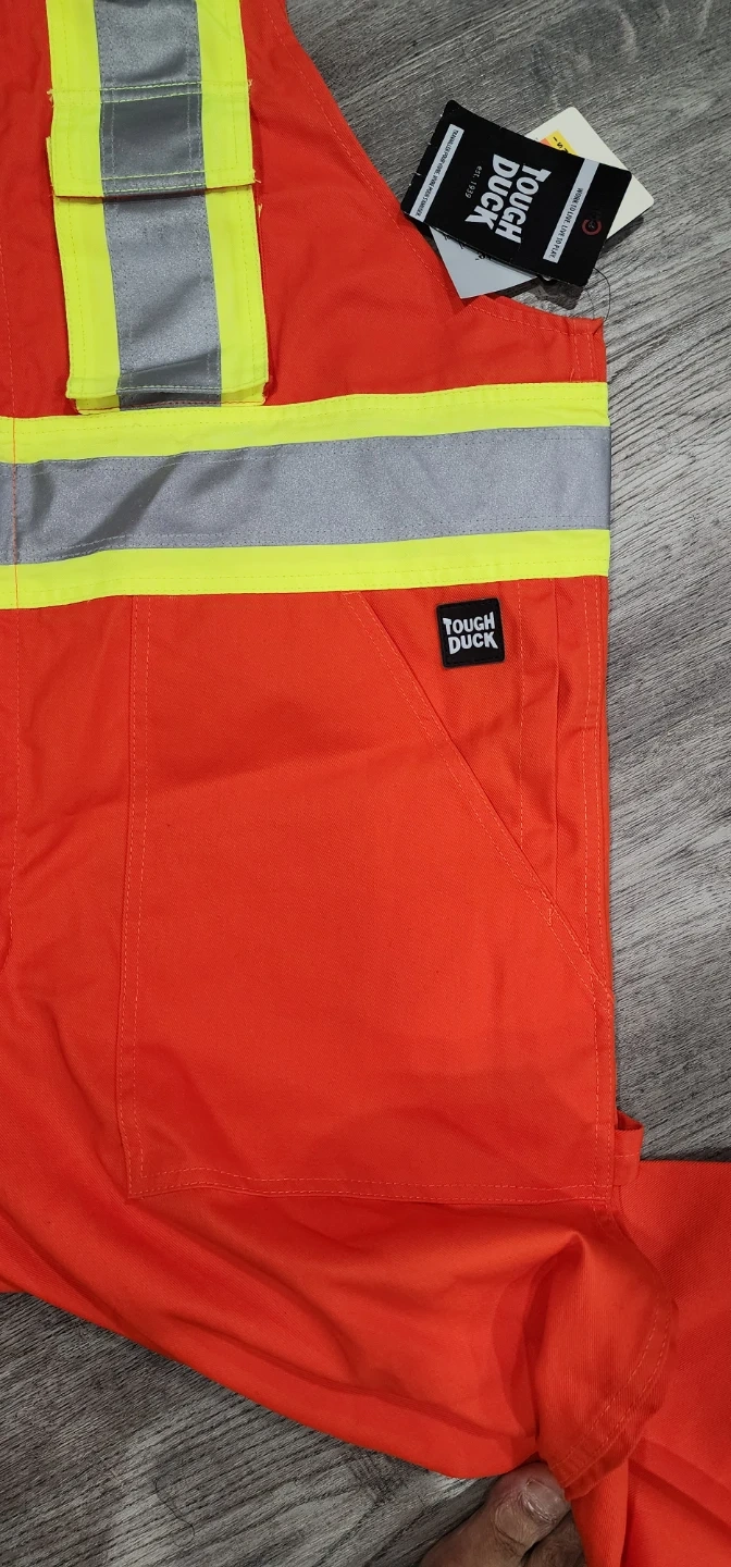 15These Tough Duck safety bib overalls are brand new with tags! They feature reflective stripes and are bright orange. Perfect for staying safe and visible on the job