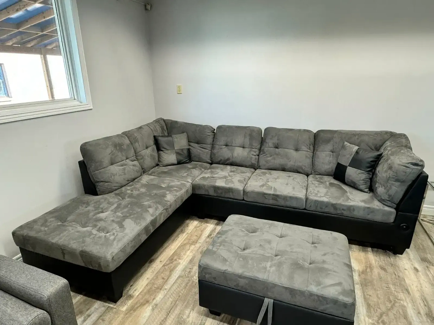 20We sell futons, sleeper couches, SECTIONAL SLEEPER, Pullout Bed, Sleeper couches, pullout beds, sofabed, dining tables, kitchen tables, dinette sets, bedroom sets, single beds, sectional beds, bunkbed, recliner sets, leather sofas, table lamp, sleeper sofa, twin bed mattresses, roll mattresses, memory foam mattresses, queen bed frame, metal bed frames, accent chairs, coffee tables, end tables, night tables, console table, sofa tables dining chairs, wooden tables, king bed frame kids bed children’s furniture, floor lamp, wall art, paintings, rugs, etc…… New Sofa Sectional Set with Left Storage Chaise and Ottoman - Grey/ Chocolate Comfortable and Soft Seats Eye-Catching Addition to Your Living Room Easy and Quick Opening Mechanism Dimensions (L x W x H): Sofa: 75" x 33" x 34" Chaise: 78" x 33" x 34" Ottoman: 38" x 24" x 17 Sale Price: $1099 Cod Available Order From Our WEBSITE and Get It Delivered to Your Home www.cosmichomescanada.com *****WhatsApp: 226-883-3111***** $$DELIVERY AVAILABLE AT ADDITIONAL COST $$ *********CASH ON DELIVERY IS ALSO AVAILABLE PLEASE CONTACT**********