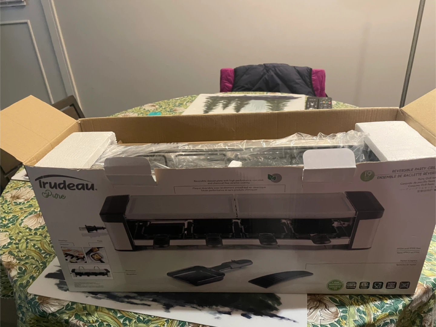 61Selling a brand new Trudeau Pure Reversible Party Grill Set! It's still in its original packaging and has never been used. This set includes a reversible grill plate with high-performance non-stick coating, perfect for a fun and healthy meal with friends and family. Comes with all the original components and accessories in the box Pick up from near Oakridge 41st sky train station