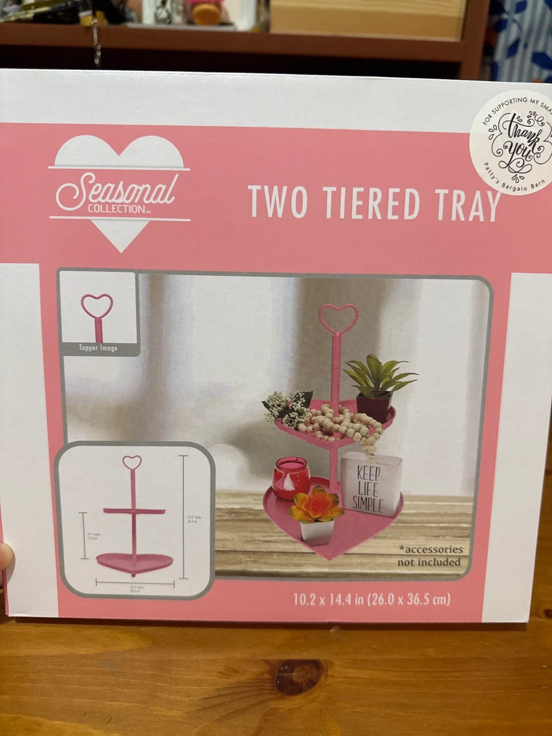 Selling a Seasonal Collection two-tiered tray! It's a cute pink colour and perfect for adding a decorative touch to any space. The dimensions are 10.2 x 14.4 inches (26.0 x 36.5 cm). Accessories not included. Make your home a little more special with this versatile piece!