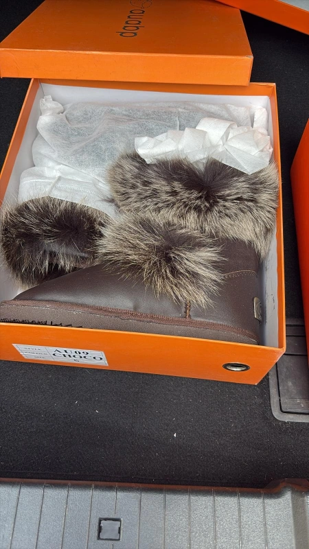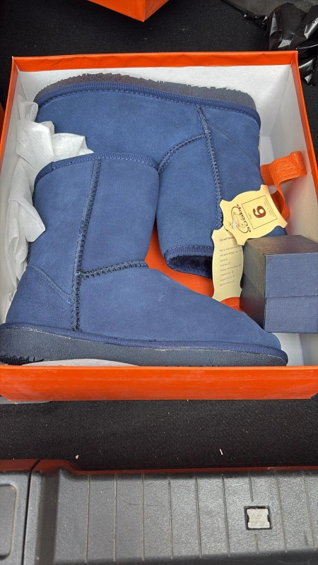 are brand new in the box! They are a size 5 and 6 and come in either a chocolate brown with fur trim or a navy blue. black few different colours Great for keeping your feet warm and cozy this winter!