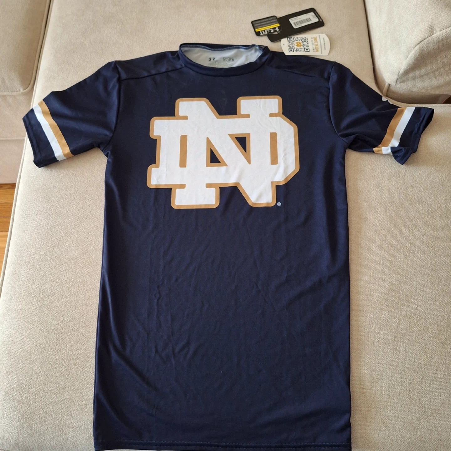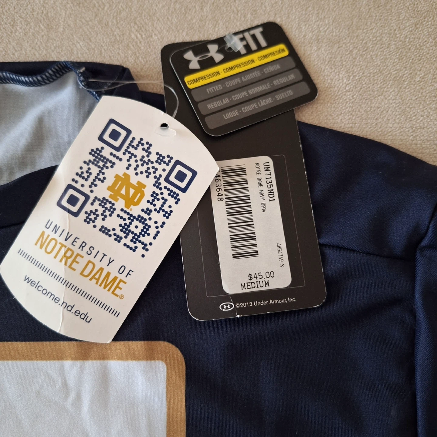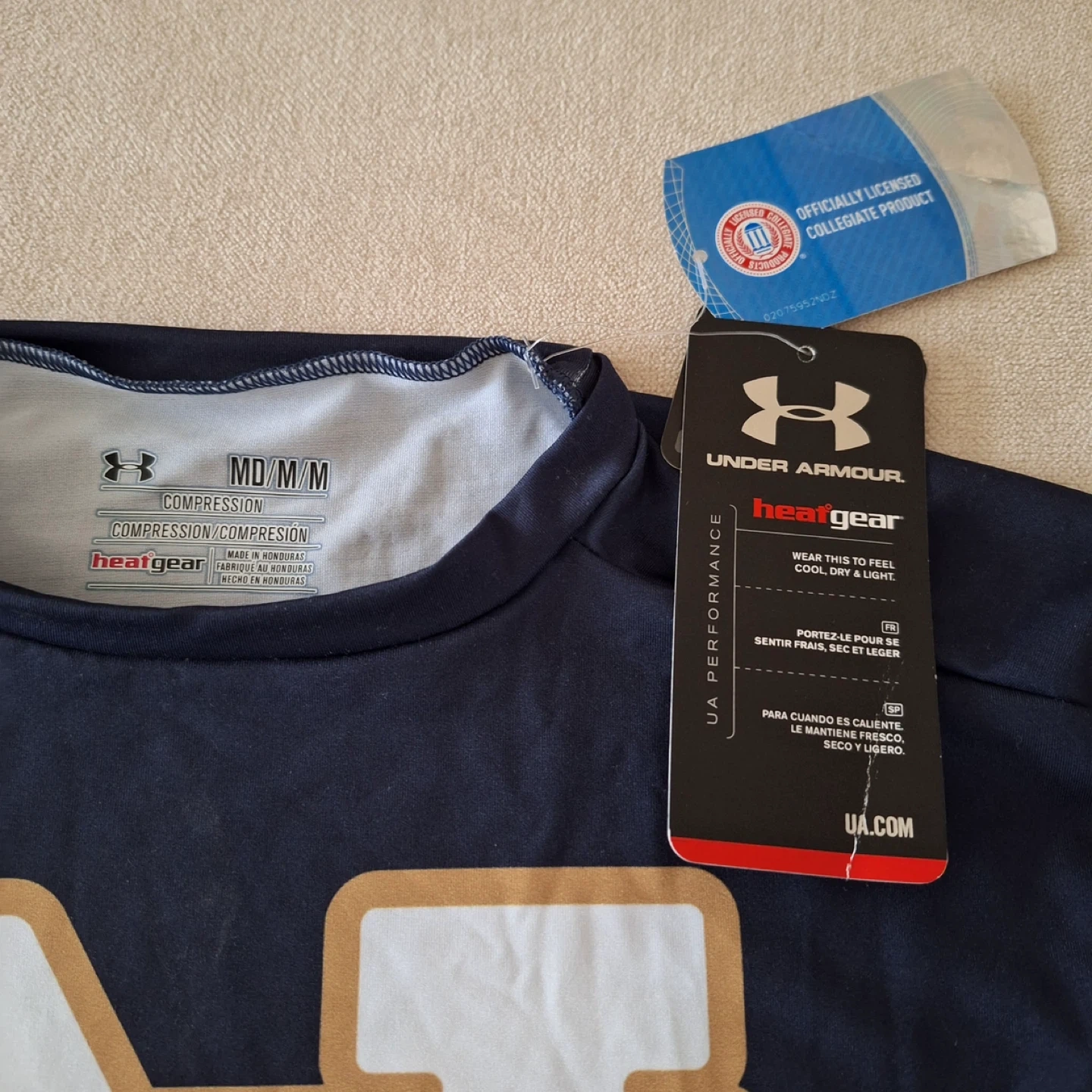 68This is a brand new Under Armour Notre Dame t-shirt in size medium! It's a compression fit, perfect for working out or showing your team spirit. The shirt features HeatGear technology to keep you cool and dry. Originally priced at $45.00.