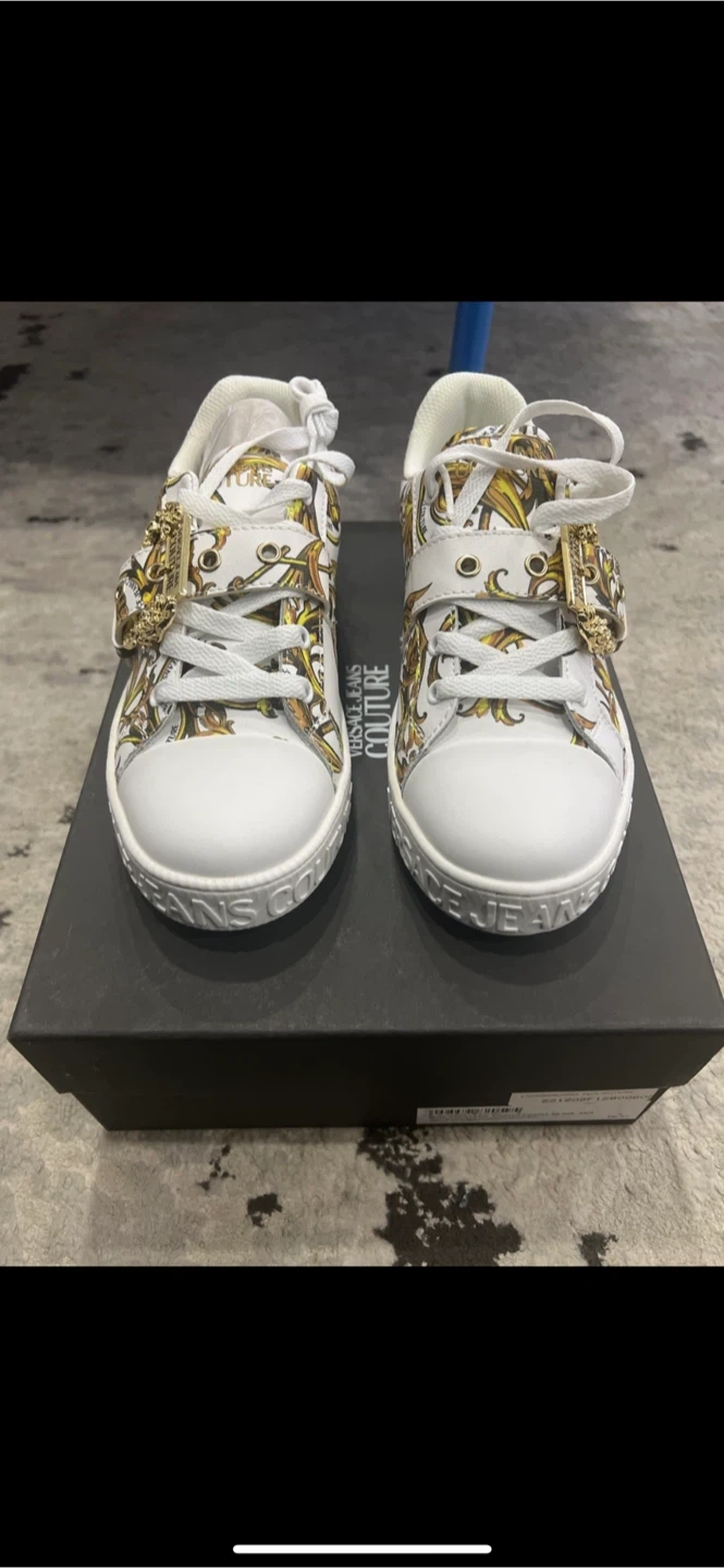 New Versace Jeans Couture White and Gold Sneakers Size 37