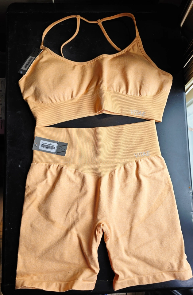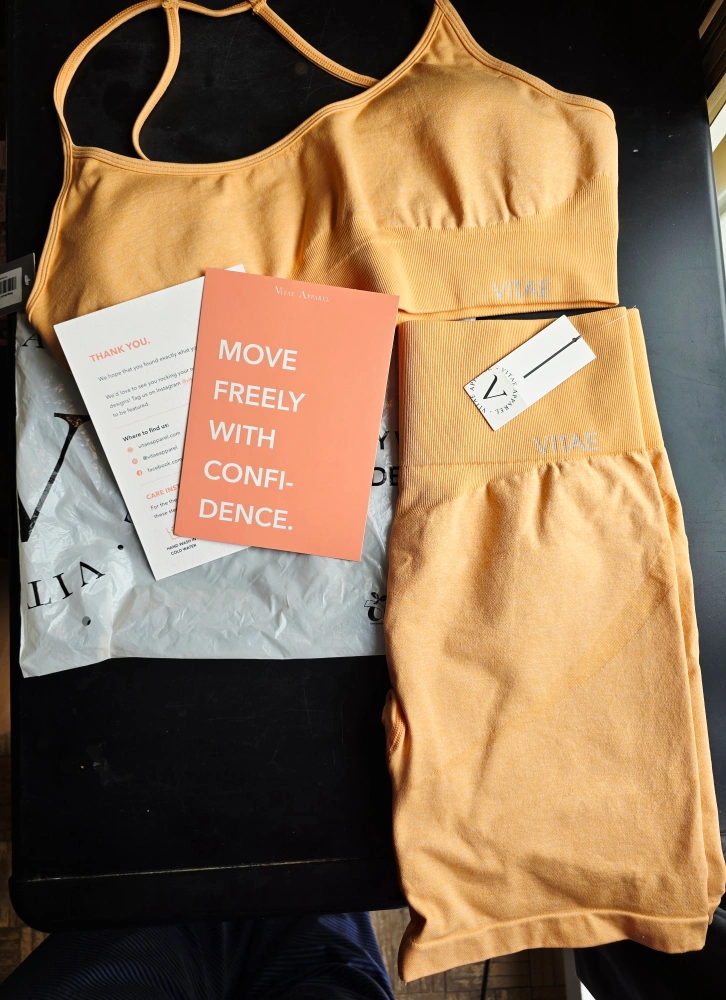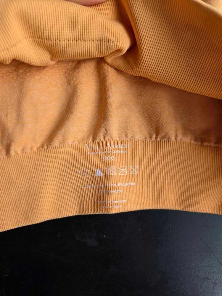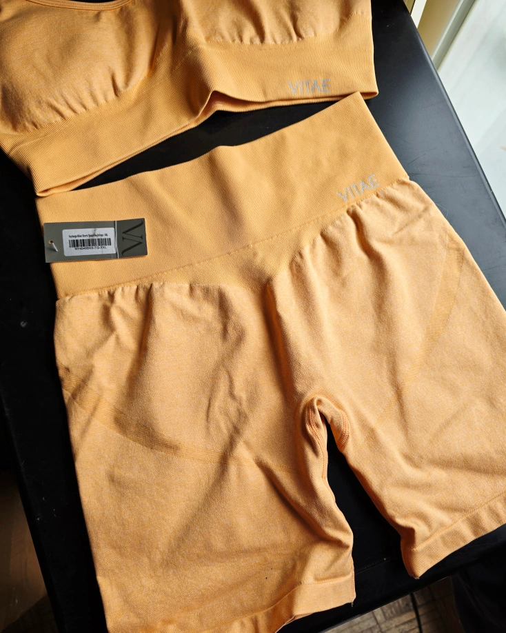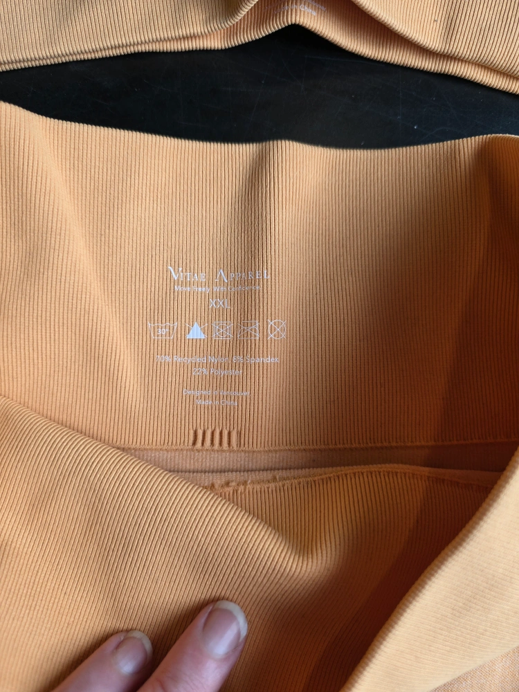 74Get ready to elevate your workout game with this Vitae apparel workout set, designed for both style and performance. The set includes a comfortable sports bra and matching high-waisted shorts, perfect for any fitness activity. This set is new with tags. Additional features: * Breathable fabric * Moisture-wicking technology * Four-way stretch for maximum flexibility * Flattering and supportive design Retailed for 160$ selling for 70 Tried on, but didnt fit, its been sitting in my closet ever since, I would say this would fit a size large, but I suggest seeing the sizing chart. - color - tangerine orange - energy sports bra - size xxxl - lifted seamless biker shorts XXL **please see photo with sizing chart** Pick up by garden city mall