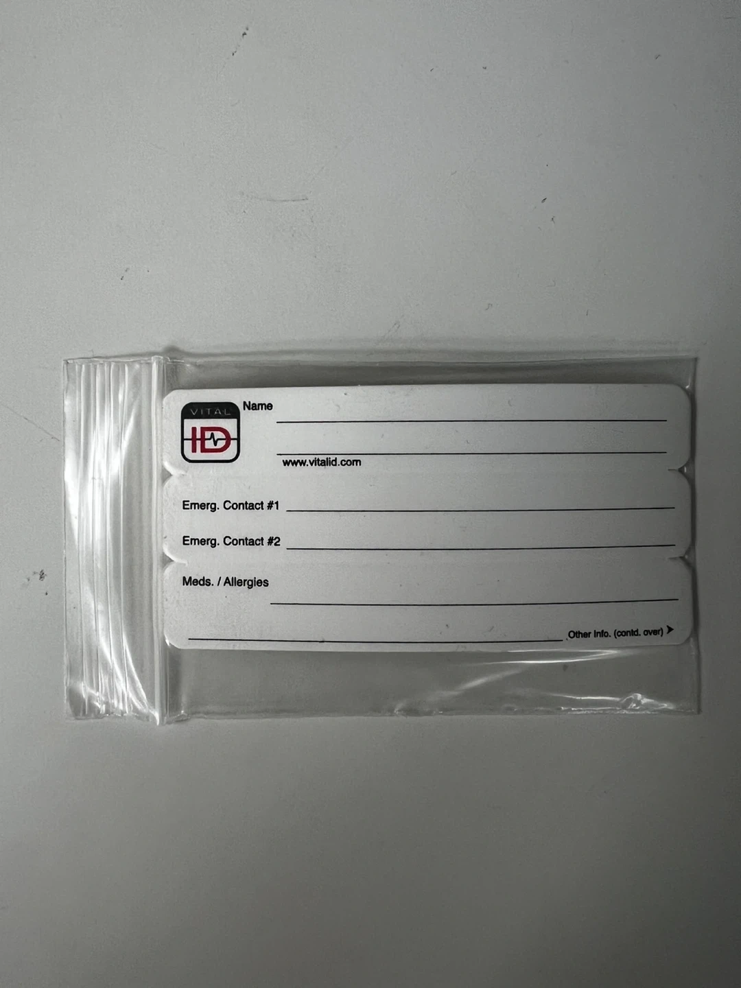 I'm selling a brand new Vital I.D. Wristband Child Safety Bracelet! It's adjustable and comfortable, designed to allow your child to carry vital contact information that is permanently located. Great for trips to busy malls, play-dates, vacations, etc