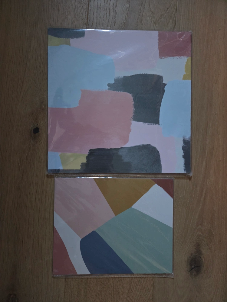 Selling two pieces of wall art with abstract designs! They're still sealed in their original packaging.