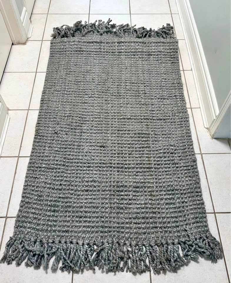 LOCATION: Pickering, Whites & Kingston Rd area Pick-up only Smoke-free home NEW - unrolled for picture only Colour - Grey with some green & brown tones Features: Pet-Friendly; Fringe/Tassel; High Traffic; Stain Resistant; Pet Friendly Material Jute & Sisal Technique/Weave Hand-Woven Weights & Dimensions: Overall Rug Size 36" W X 60" L Rectangle Overall Weight 10lb. Pile Height 0.45" H