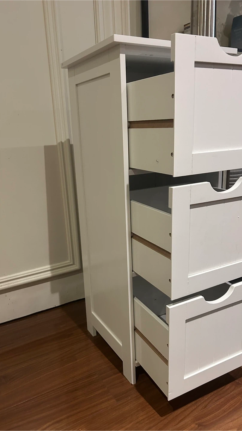 27NEW WHITE CABINET - $80 I'm selling a brand new, white floor cabinet I got from Ikea. bought this for my desk, but unfortunately, once I put it up, I realized the dimensions weren't quite right for my space. It is in perfect condition and ready to go! I still have the original box/packaging (see pic). Pick up - North York! Key Features: Dimensions: 88.5 x 36.0 x 13.5 cm Solid minimalist white wood 3-Tier shelving