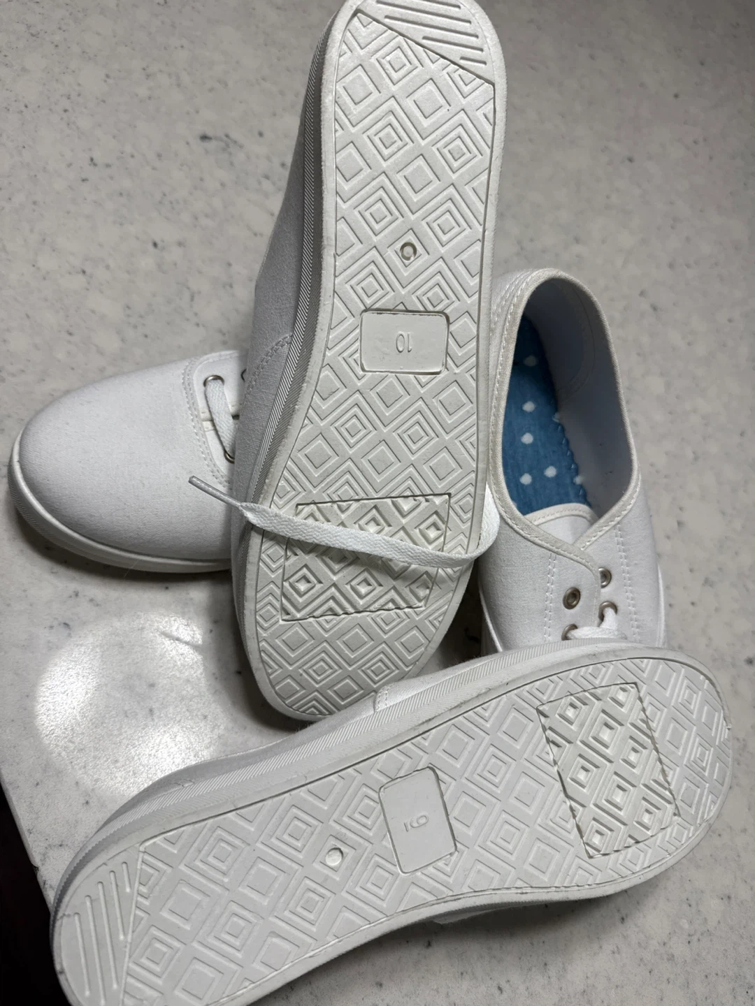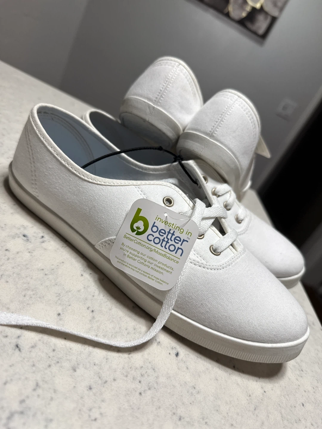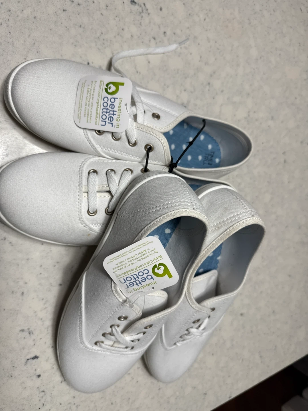 Selling a pair of brand new white canvas sneakers! They are a size 9 and 10 and made with Better Cotton. Perfect for everyday wear!