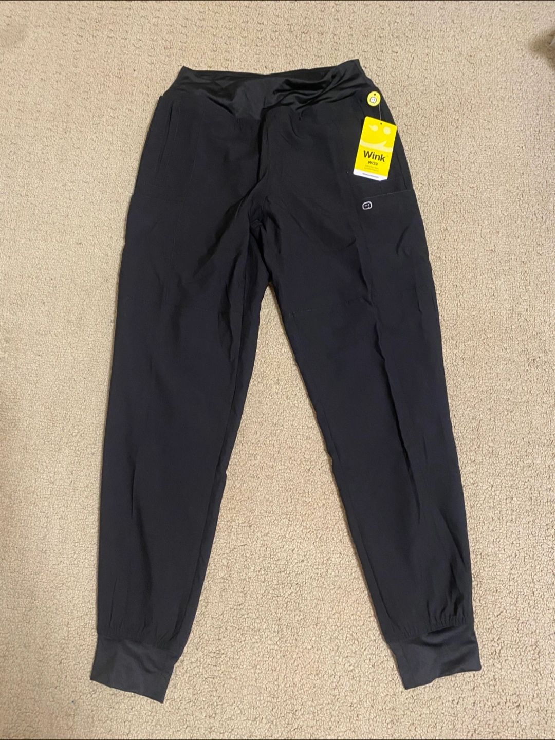 170These are brand new Wink W123 scrub pants in black, size small! They're designed with a modern fit for women. These pants are soft, easy to wear, and breathable, making them comfortable for all-day wear. They also move and stretch in all the right places