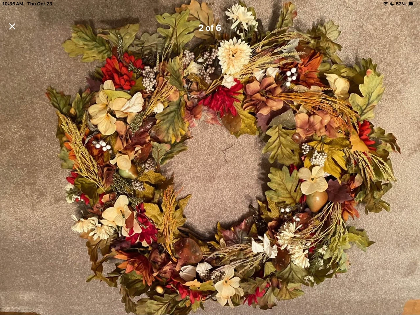 10Brand New large full wreath in unused excellent condition from Homesense (tag is still on ) Approximately 25” diameter (backside has thin felt pads for door protection) Cash/FIRM and pick up only please… is too thick fitting between my storm and front door I had changed hence why selling. From a clean, smoke and pet free home East lower Hamilton/Greenhill Ave and Quigley Rd area/close to the RedHill PKWY