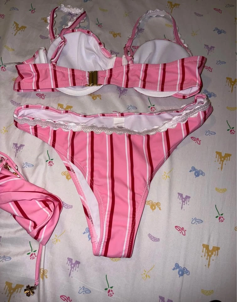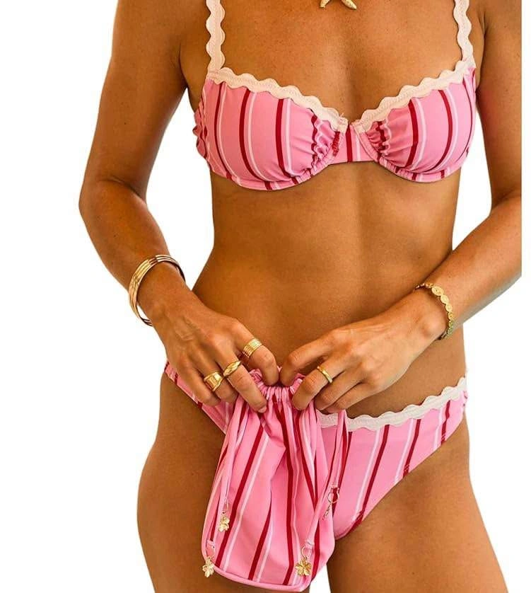 Brand new MakeMeChic Women's Bikini Sets Striped Ruched Beach Swimsuit with Swim Bag. Size-M. No holds.