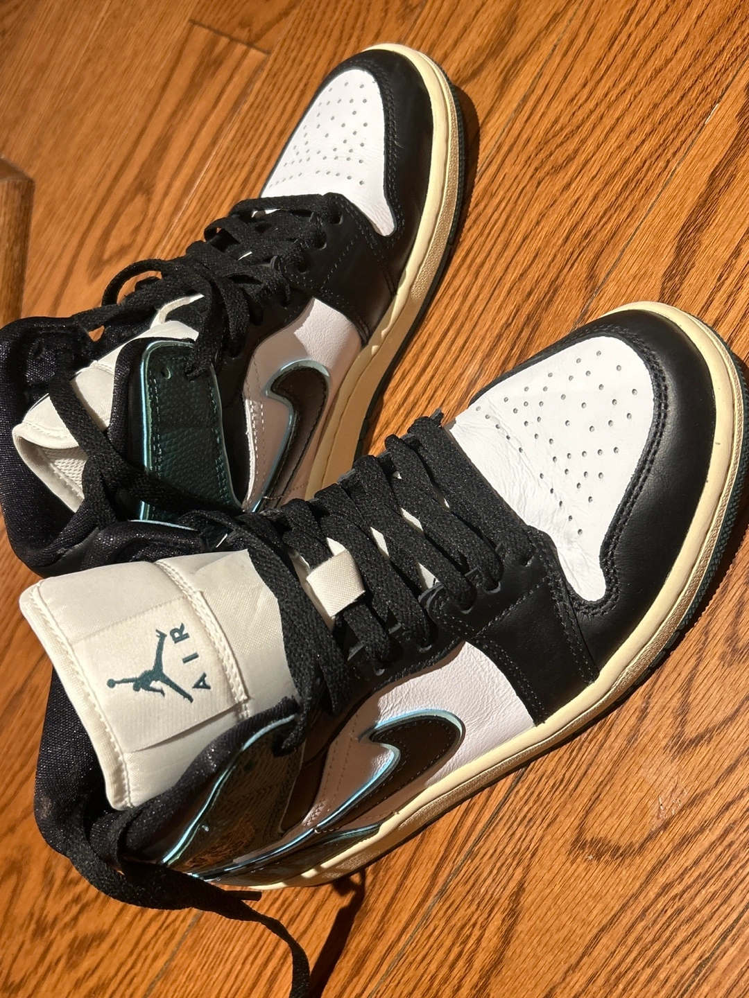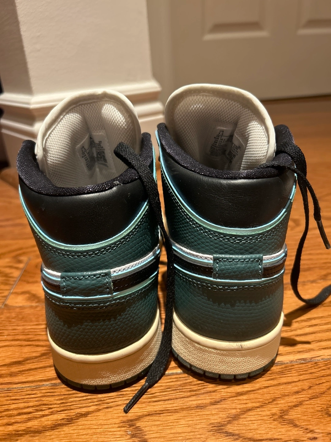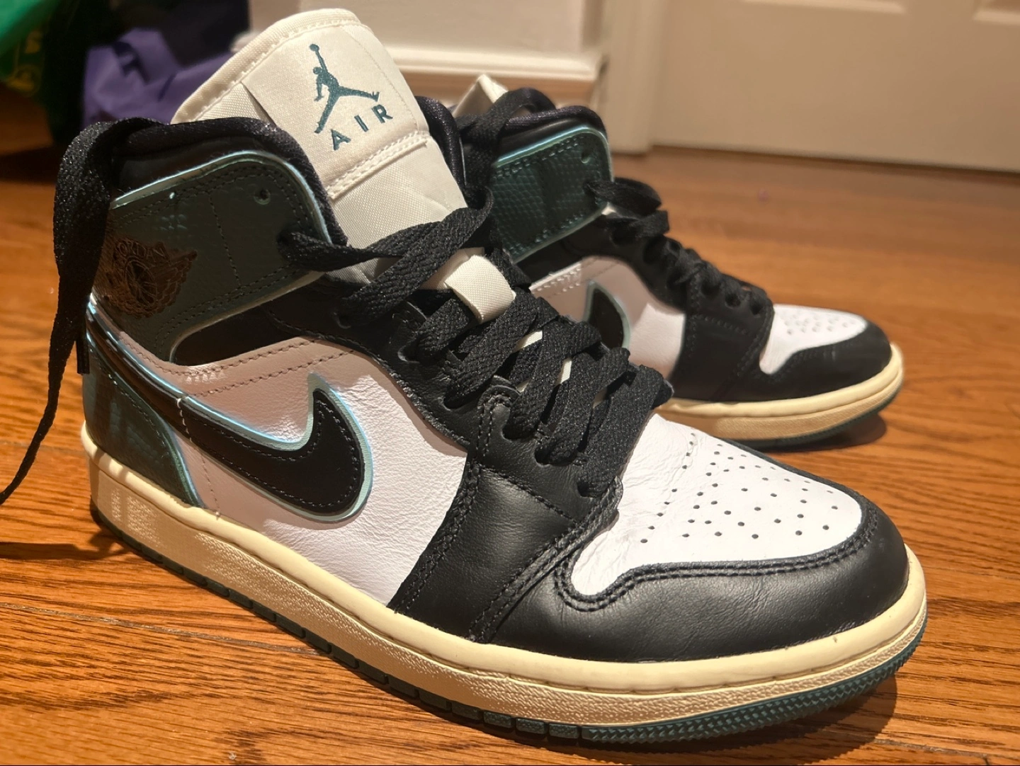68Women's Air Jordan 1 Mid SE sneakers. Size 7.5. Dark green, black, and white colour scheme. Can also be picked up from Downtown Toronto.