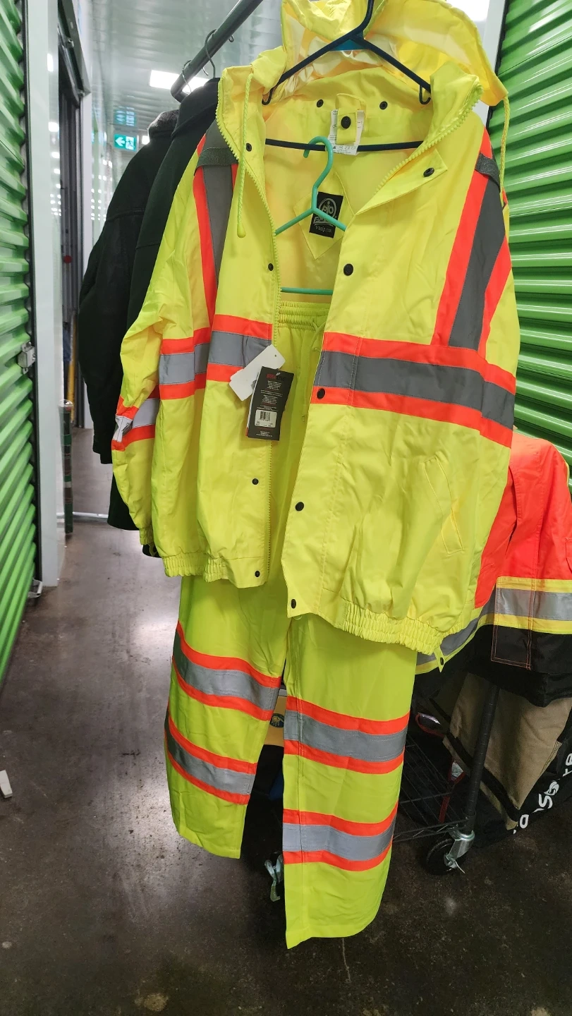 67Selling a brand new Work King hi-visibility rain suit in size XL. This set includes both the jacket and pants, perfect for staying dry and visible on the job site. Never been worn!