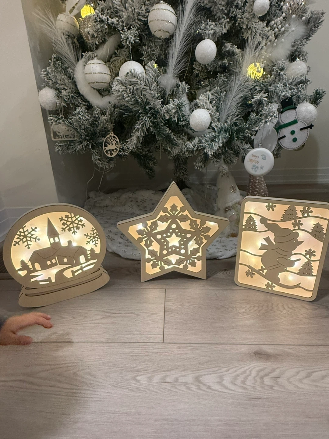New Xmas Decor! Large 12”Christmas Wooden Gift with Lights