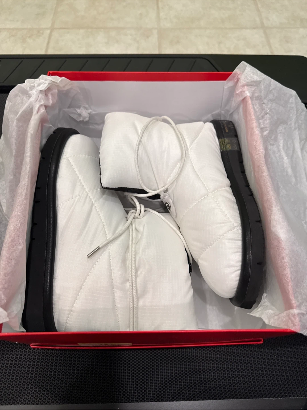 515These are brand new Yaelle boots in size 5! The boots are white nylon with a black sole and come in the original box