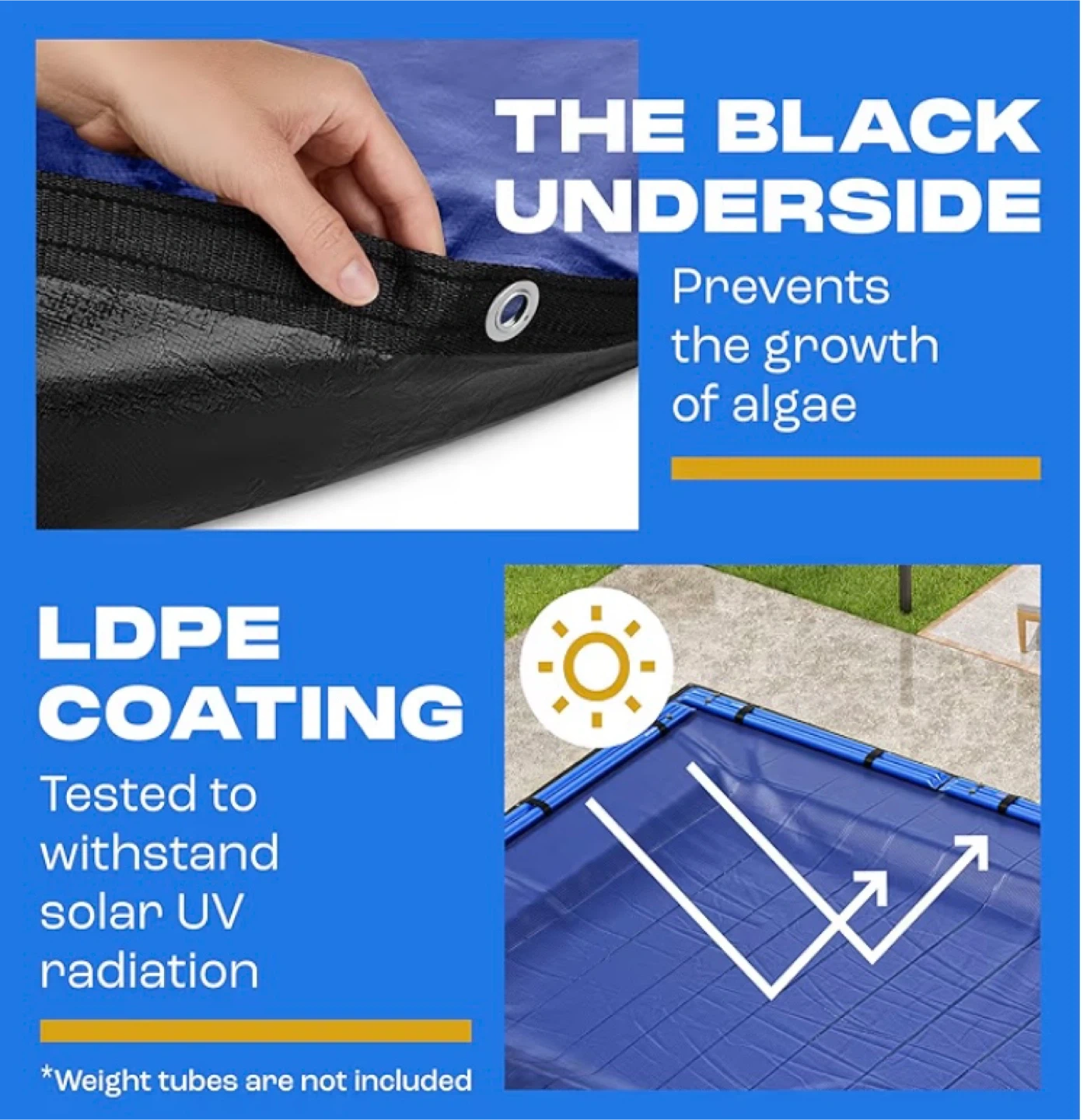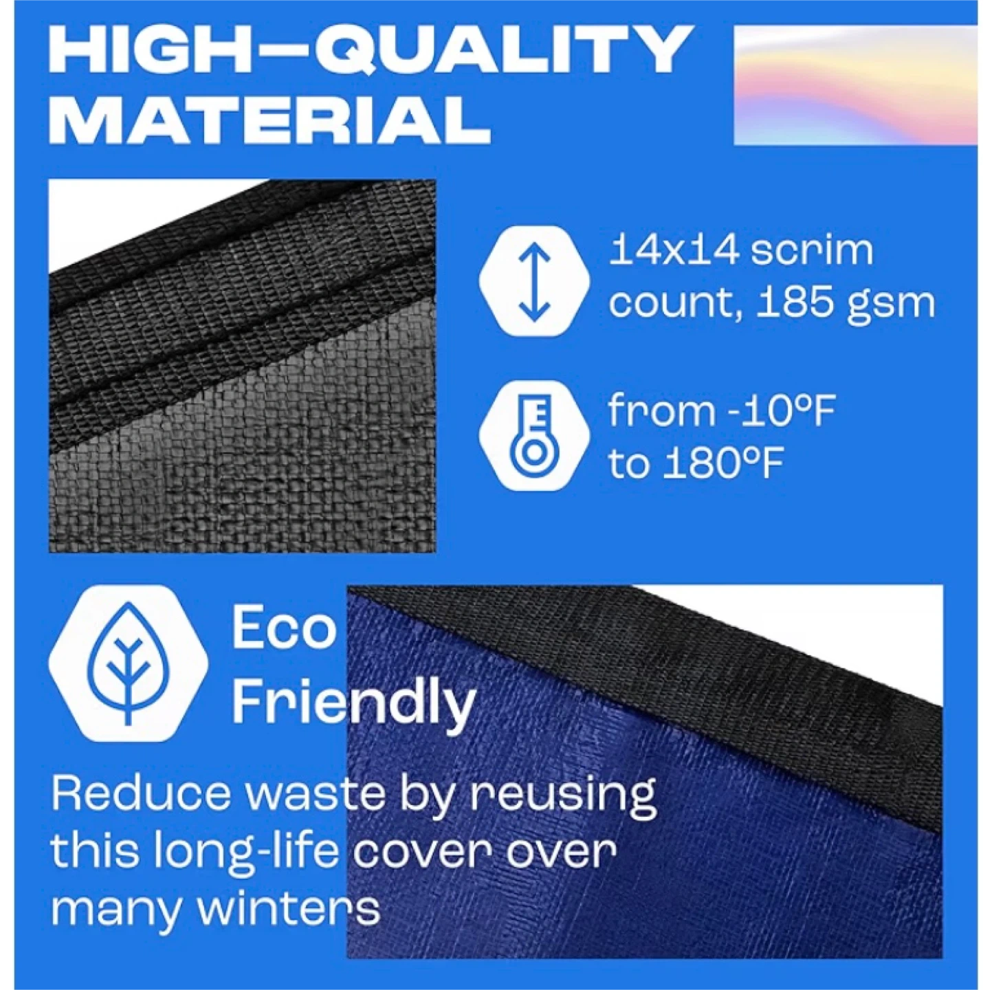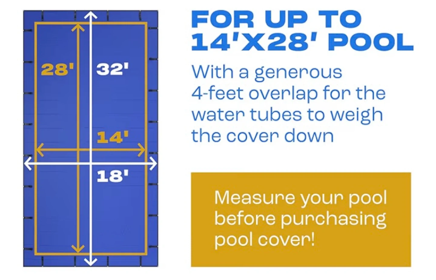 New Yankee Pool Cover for 14x28 ft Rectangular In-ground Pool Extra Thick & Durable | Sapphire Series of Premium Cold- and UV-Resistant In-Ground Pool Protection $125 (retail $170 plus tax) Pickup in Whitby This winter pool cover boasts a 14×14 scrim count (the industry’s top standard) and a density of 185 gsm with the pool cover for reliable seams. PROTECTION FROM SUNLIGHT AND OVERGROWING. Inground pool covers must protect the pool from UV radiation that stays high in winter. Our pool closing kit has LDPE coating on it that’s been tested to withstand solar ultraviolet. The BLACK UNDERSIDE of the pool blanket won’t let the water overgrow. HIGHLY RESISTANT TO COLD. You want your pool cover (inground) to survive low temperatures. Unlike a simpler pool tarp, this swimming pool cover will cope with the cold as bad as −10° F (−25° C) and the heat as high as 180° F (80° C).