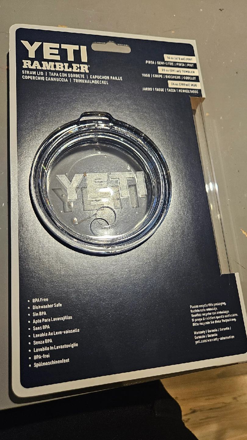 65Selling a brand new YETI Rambler 20 oz Replacement Lid with Straw! It is BPA free and dishwasher safe. Perfect for your 20 oz tumbler