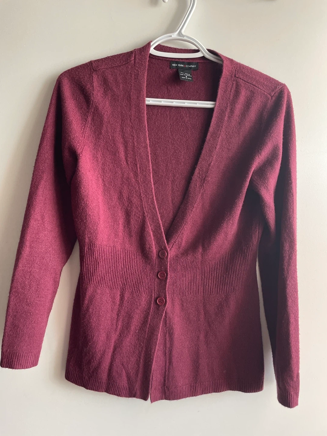 607New York & Company cardigan in a lovely burgundy colour. It's a size medium and in great condition!