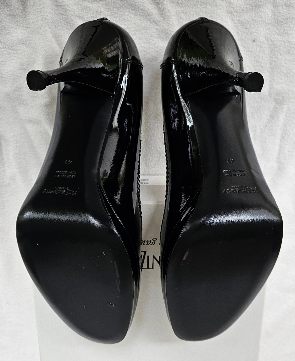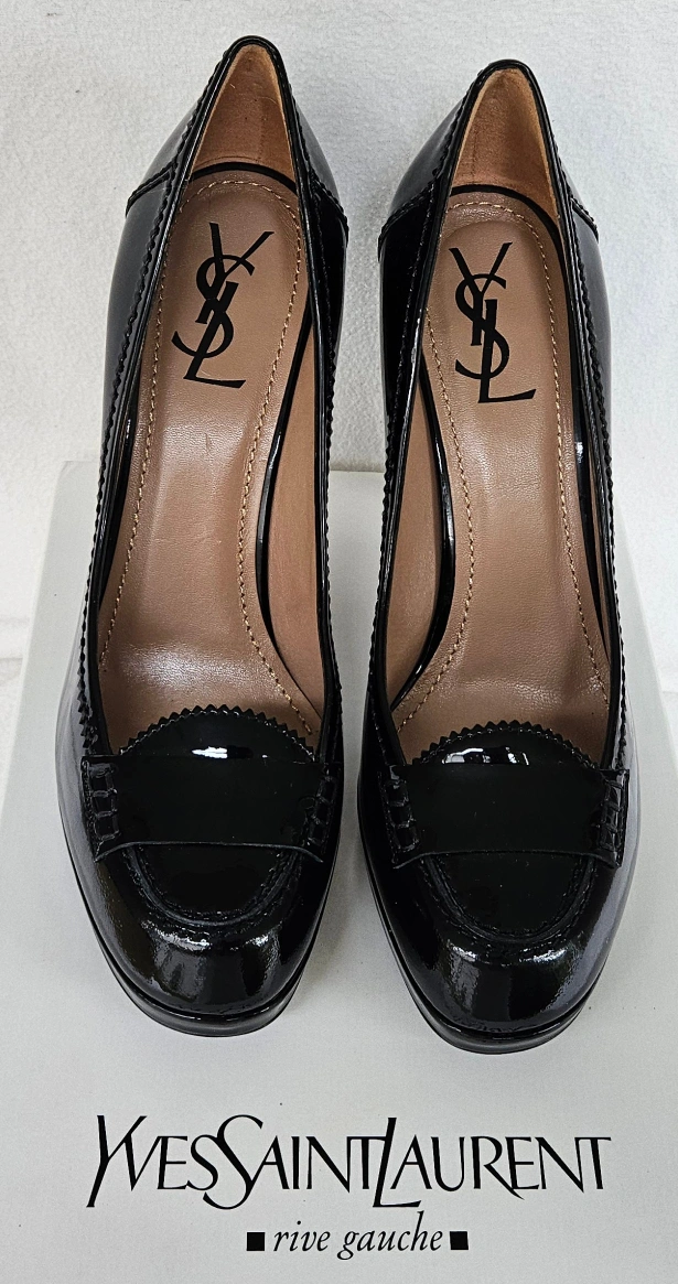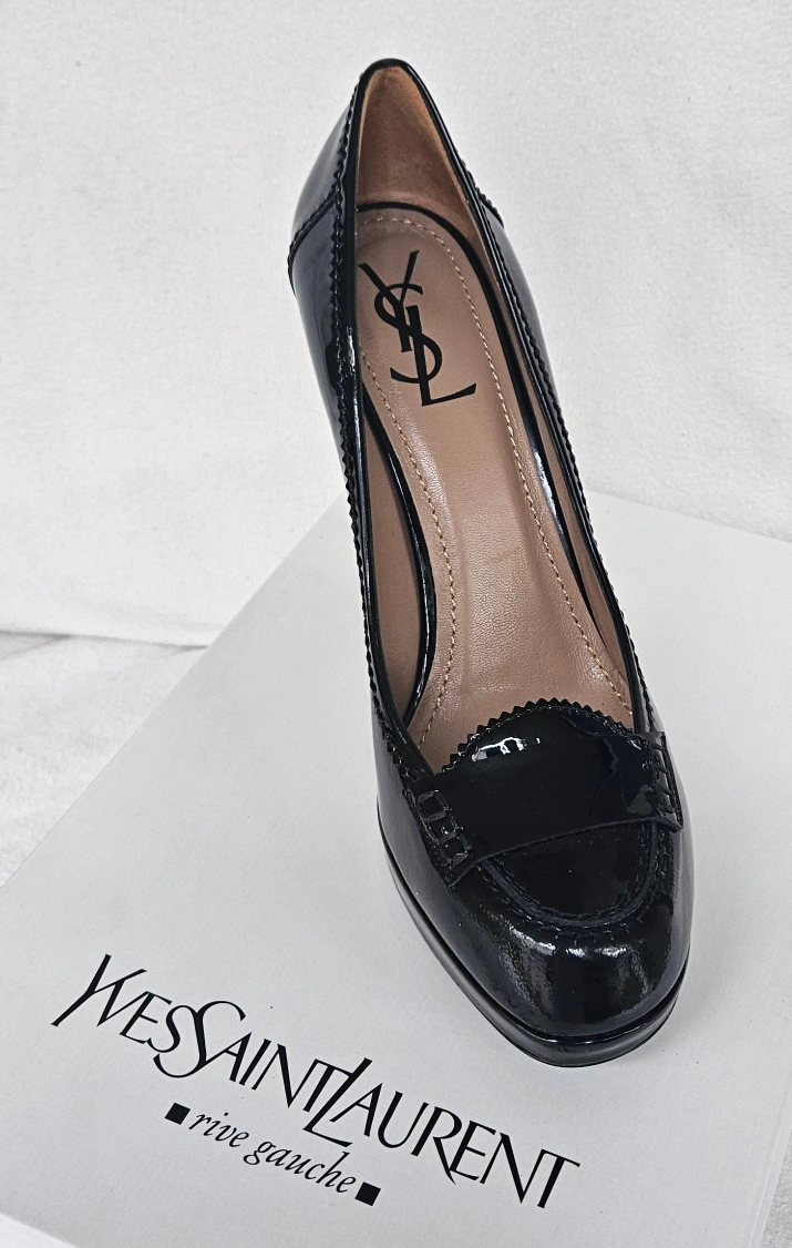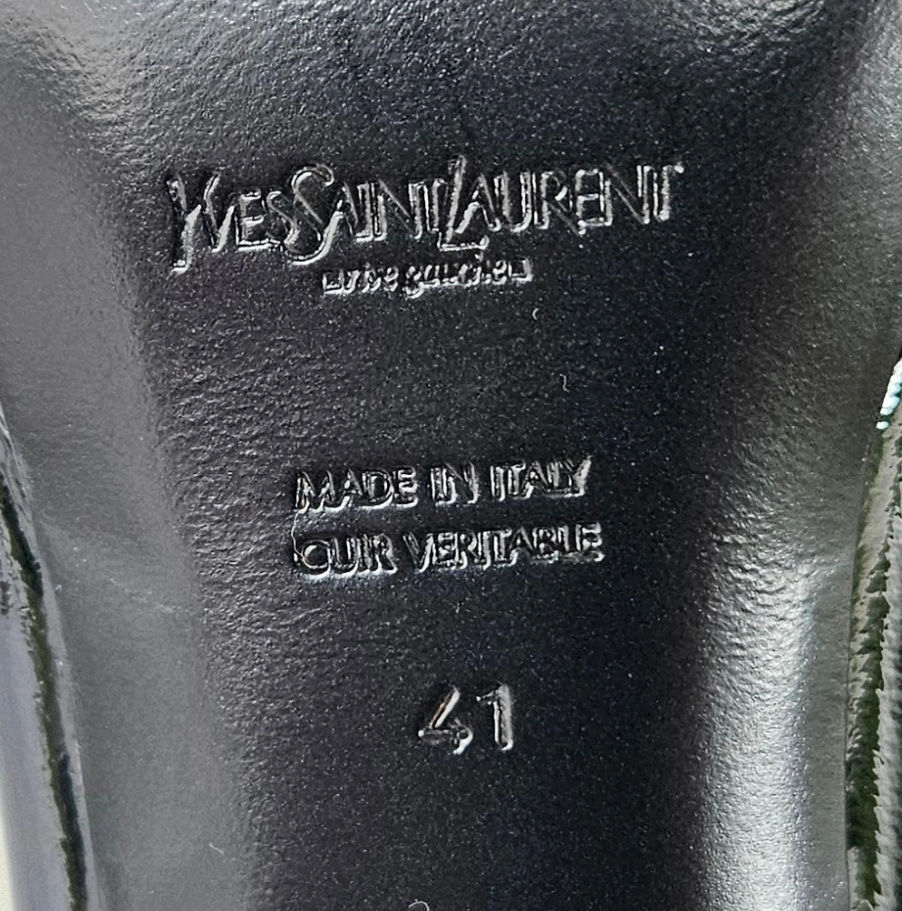 1000+New Yves Saint Laurent Preppy 90 Pump Vitello Vernice Soft Nero Size 41/ 10 This pair Yves Saint Laurent Preppy 90 Pump Vitello Vernice Soft Nero high heels shoes are in new cosmetic cond. This pair of authentic Yves Saint Laurent platform patent leather heels shoes, heel height 5.5”. Made in Italy, Vitello Vernice Soft (Patent Soft Calfskin)100% authenticity guaranteed. This pair of Yves Saint Laurent Preppy 90 Pump comes with YSL stain shoe bag, a pair of high heel tips and YSL box.