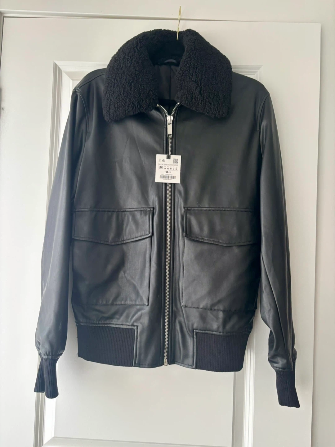 10Selling a Zara faux leather jacket in size medium. It's black with a cozy faux fur collar. Perfect for adding a bit of edge to your outfits!