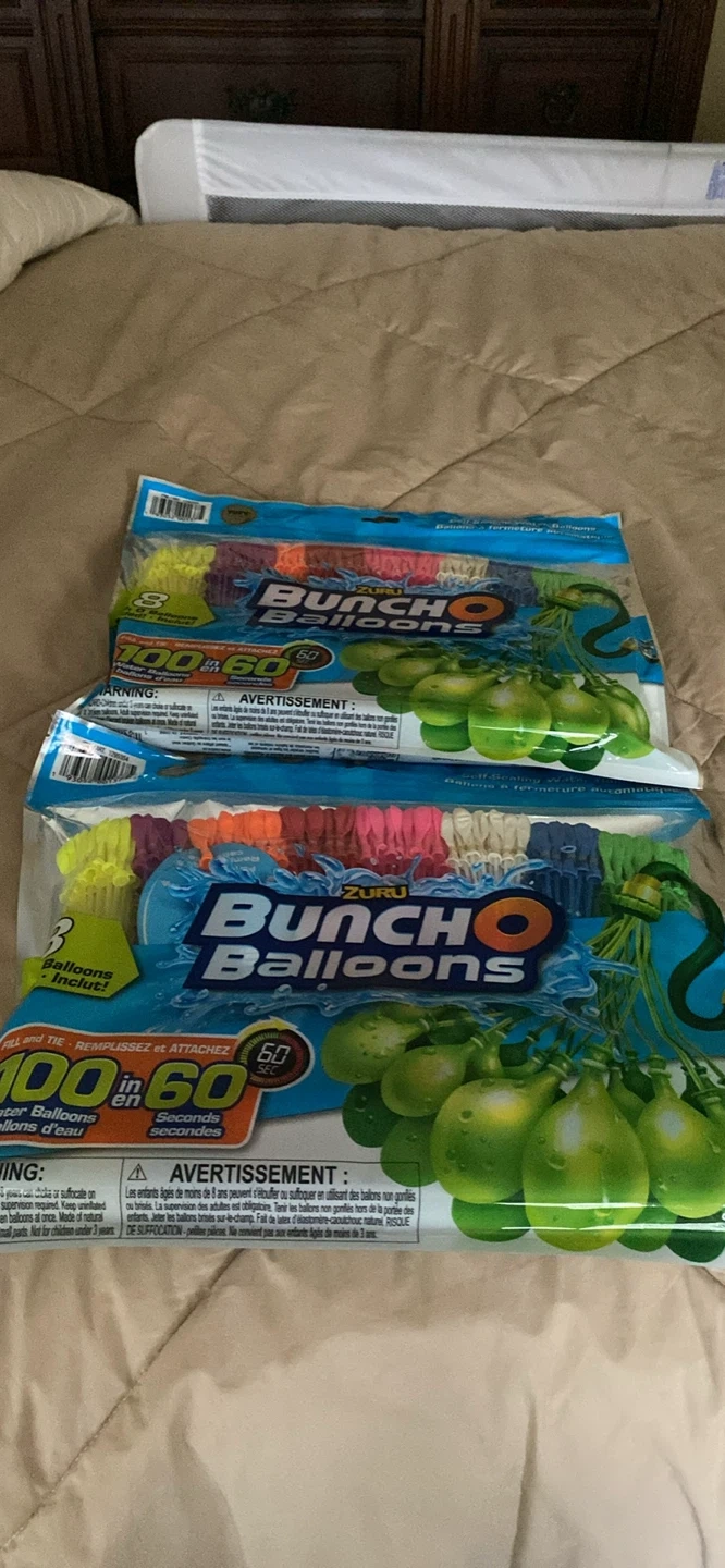 52I have two new packages of Zuru Bunch O Balloons! Each package contains 100 self-sealing water balloons that you can fill and tie in just 60 seconds. Perfect for summer fun and water fights!