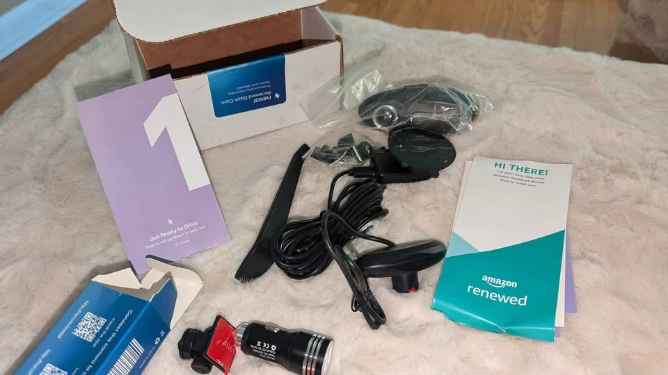 Professionally inspected, tested, and cleaned - Nexar Pro Dual Dash Cam. This smart dash cam system includes both a front road-facing camera and an interior cabin camera with infrared night vision, ideal for rideshare drivers or anyone who wants full protection on the road. Includes, wrapped new in box: Nexar Pro Dual Dash Cam Interior IR night-vision camera (dual system) 32GB storage card (removable) Power cable & car charger adapter Mounting pads and cable clips Trim tool and setup guides Packaging , instructions and documentation Features: Dual Camera Setup: Records both the road and cabin simultaneously in HD. Infrared Night Vision: Crystal-clear interior video, even in total darkness. Automatic Recording: Starts recording when your car does. App Connectivity: Syncs with the Nexar app for cloud backup and incident detection. G-Sensor & Event Detection: Automatically saves footage of impacts or sudden stops. Loop Recording: Continuous video without running out of space.